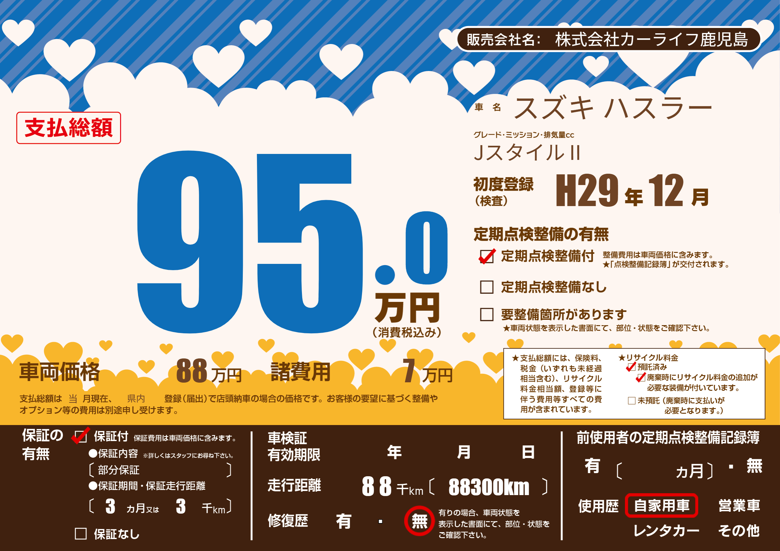 | 車名 | スズキ ハスラー | グレード ミッション 排気量 |