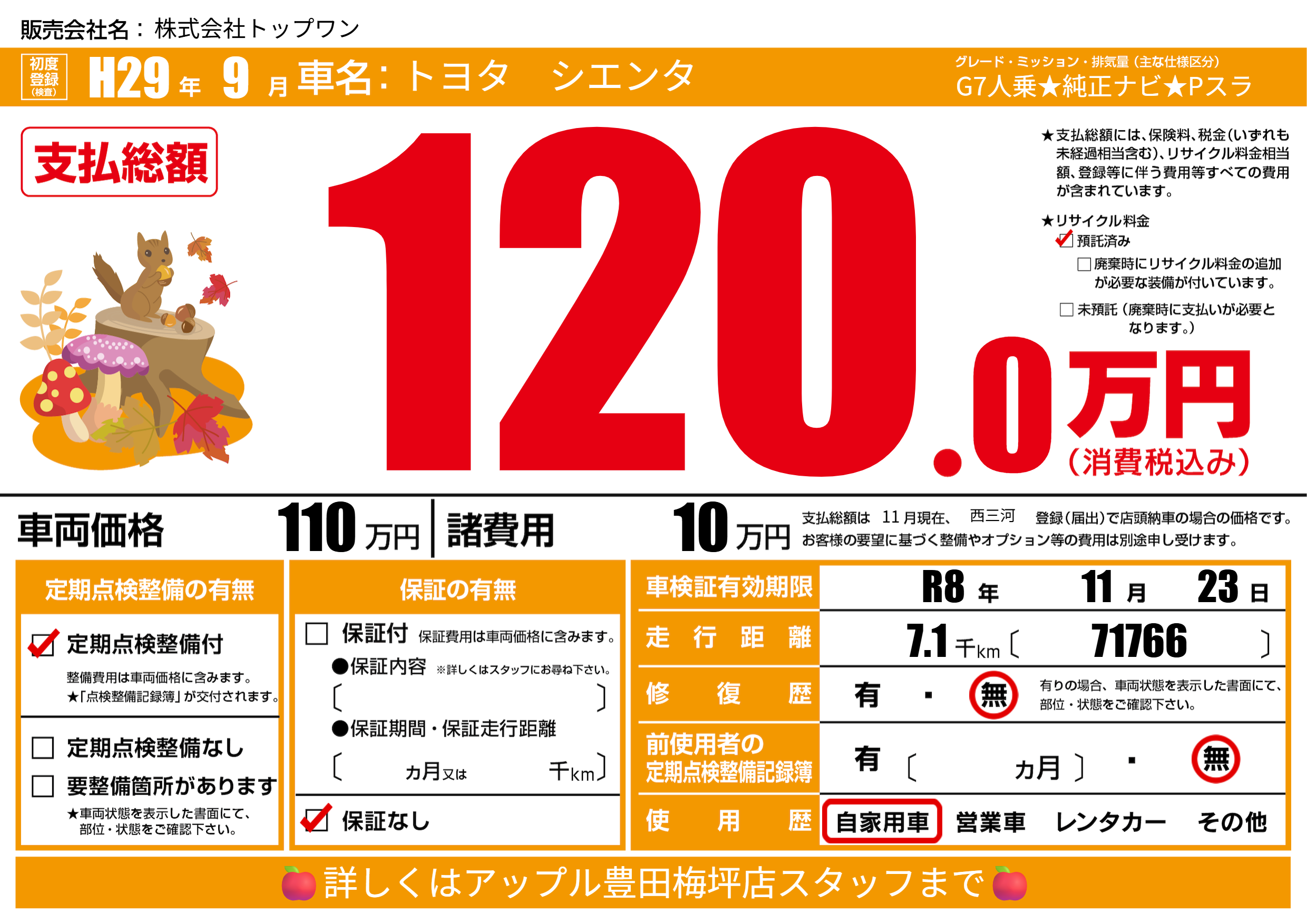| 車検制限 | R8年 11月 23日 | ||