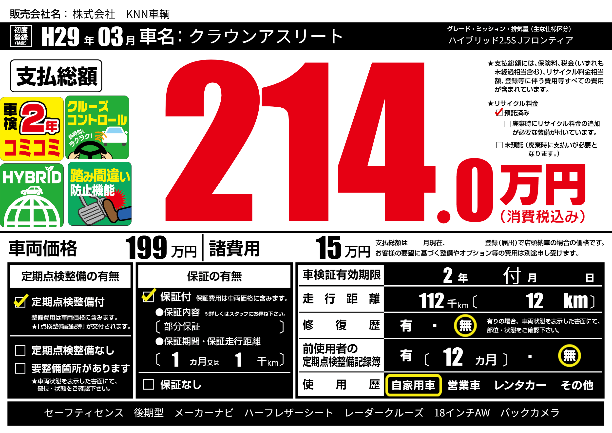 なし | 車検制限 | 2年付月---月 |