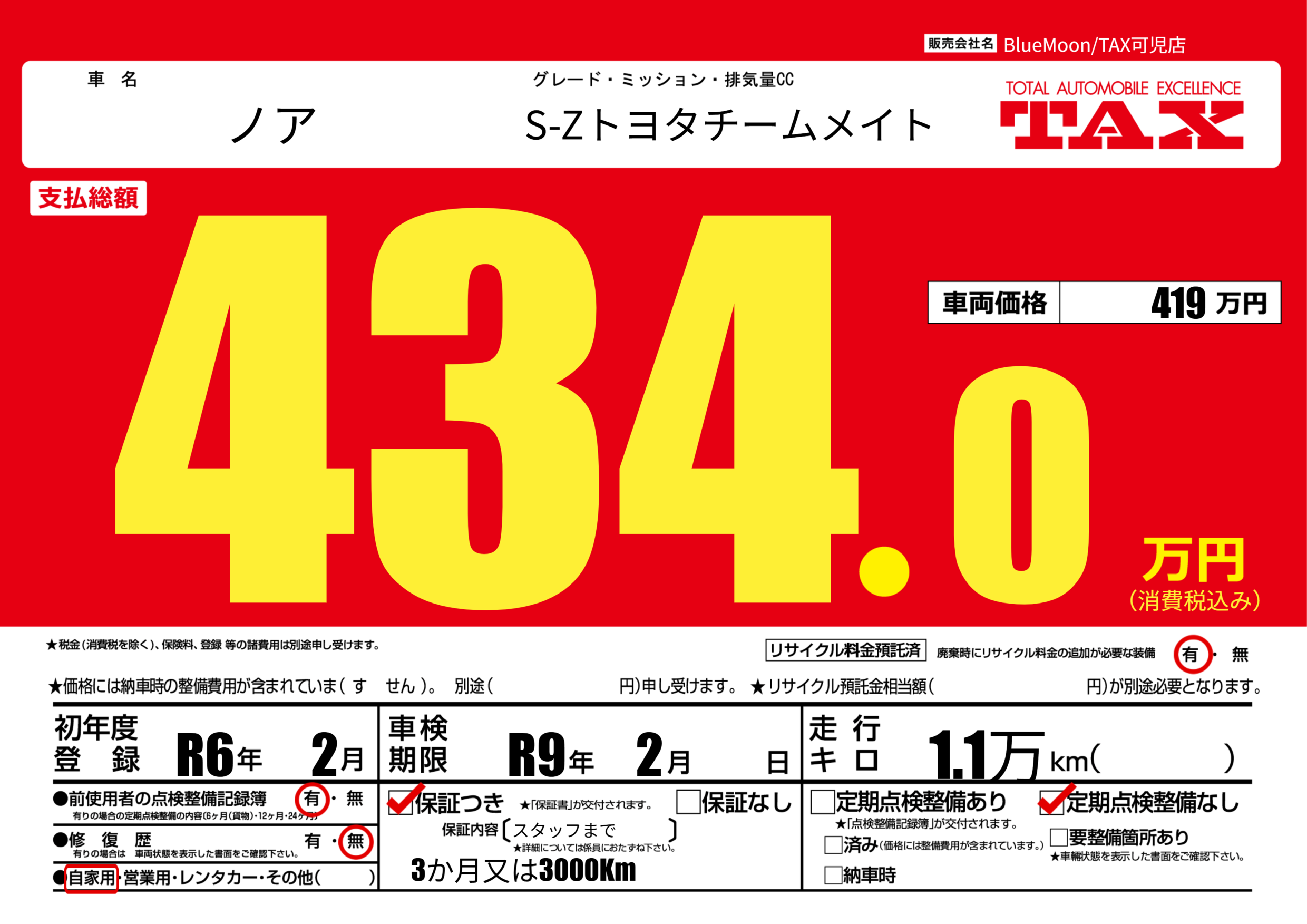 | 走行キロ | 0.1万km | 初年度登録 | R6年2月 |