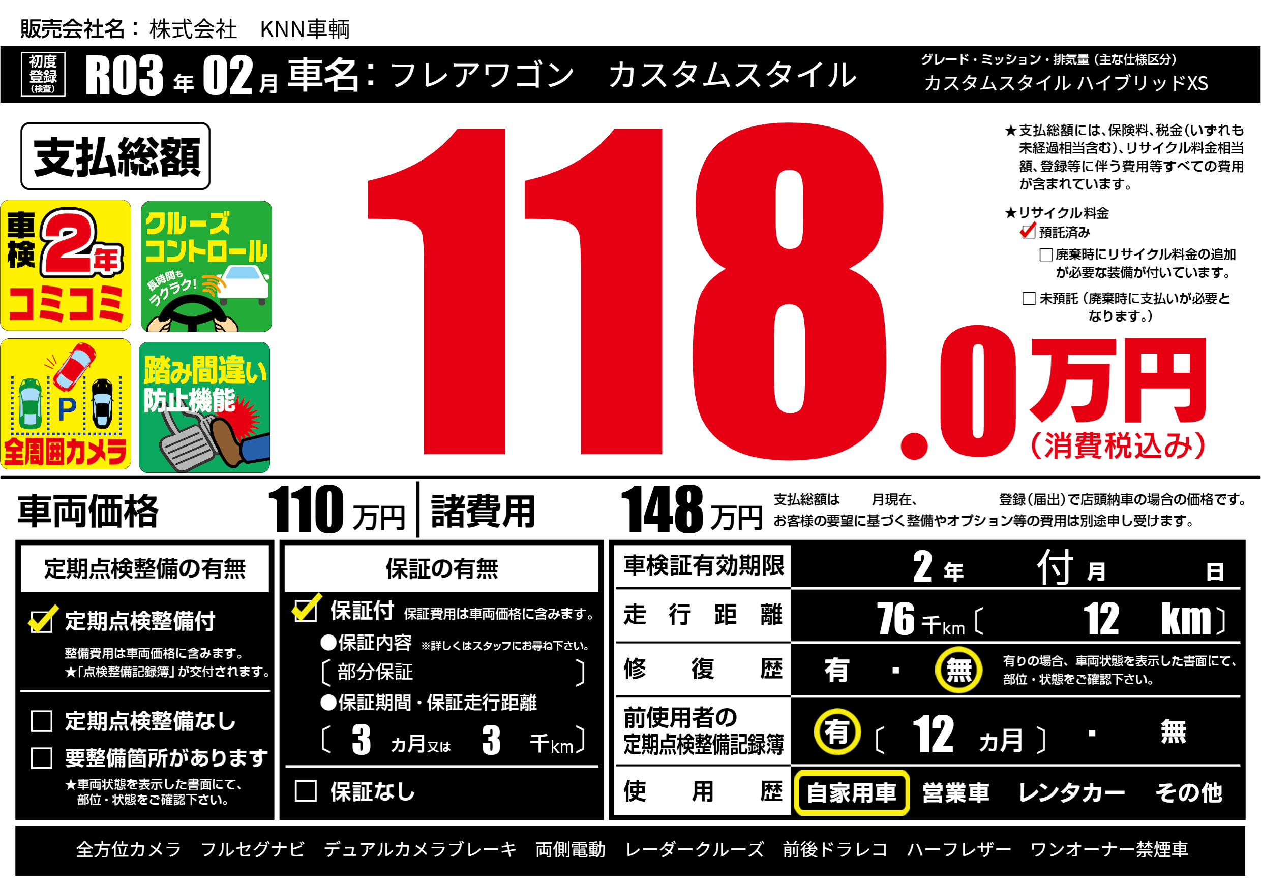| 走行キロ | 7.6万km | 初年度登録 | R03年02月 |