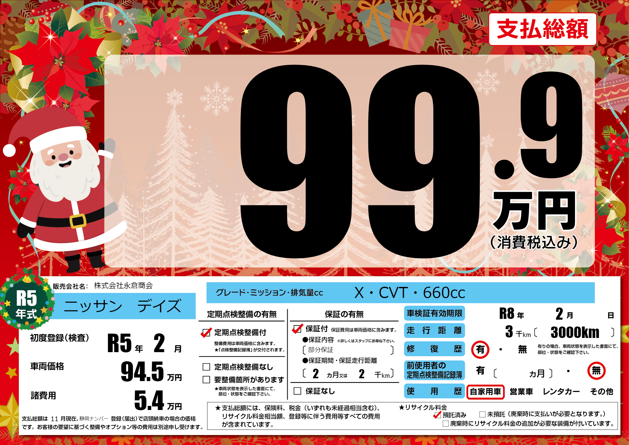 | 走行キロ | 0.3万km | 初年度登録 | R5年2月 |