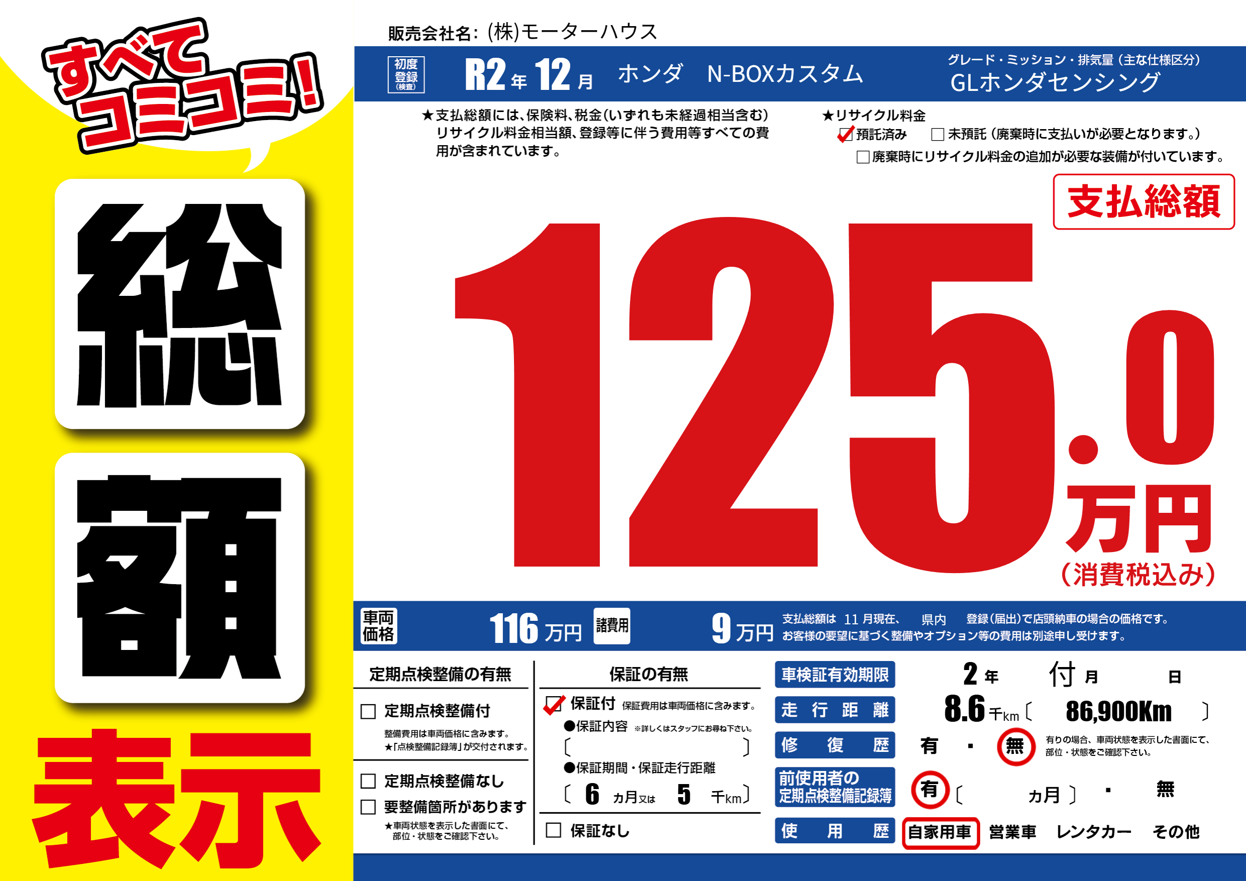 | 車検制限 | 2年 付月 - 日 | ||