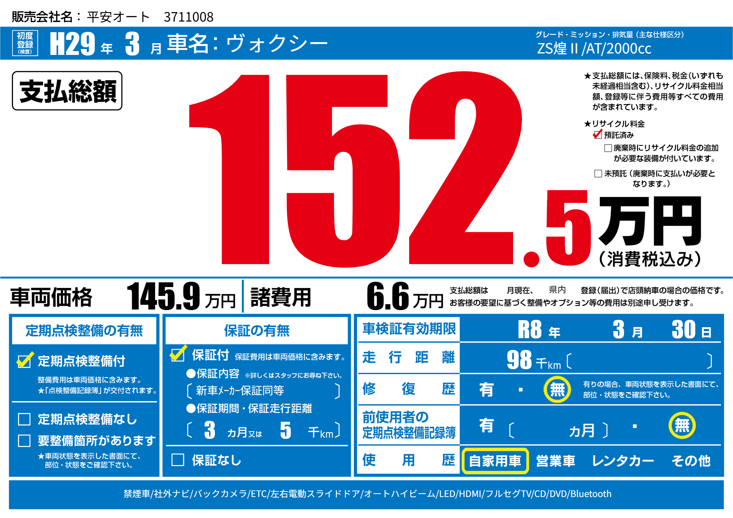 なし | 車検制限 | R8年3月30月 |