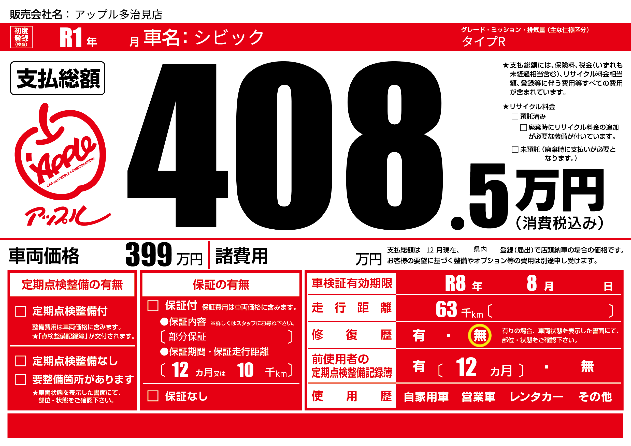 なし | 車検制限 | R8年8月---月 |