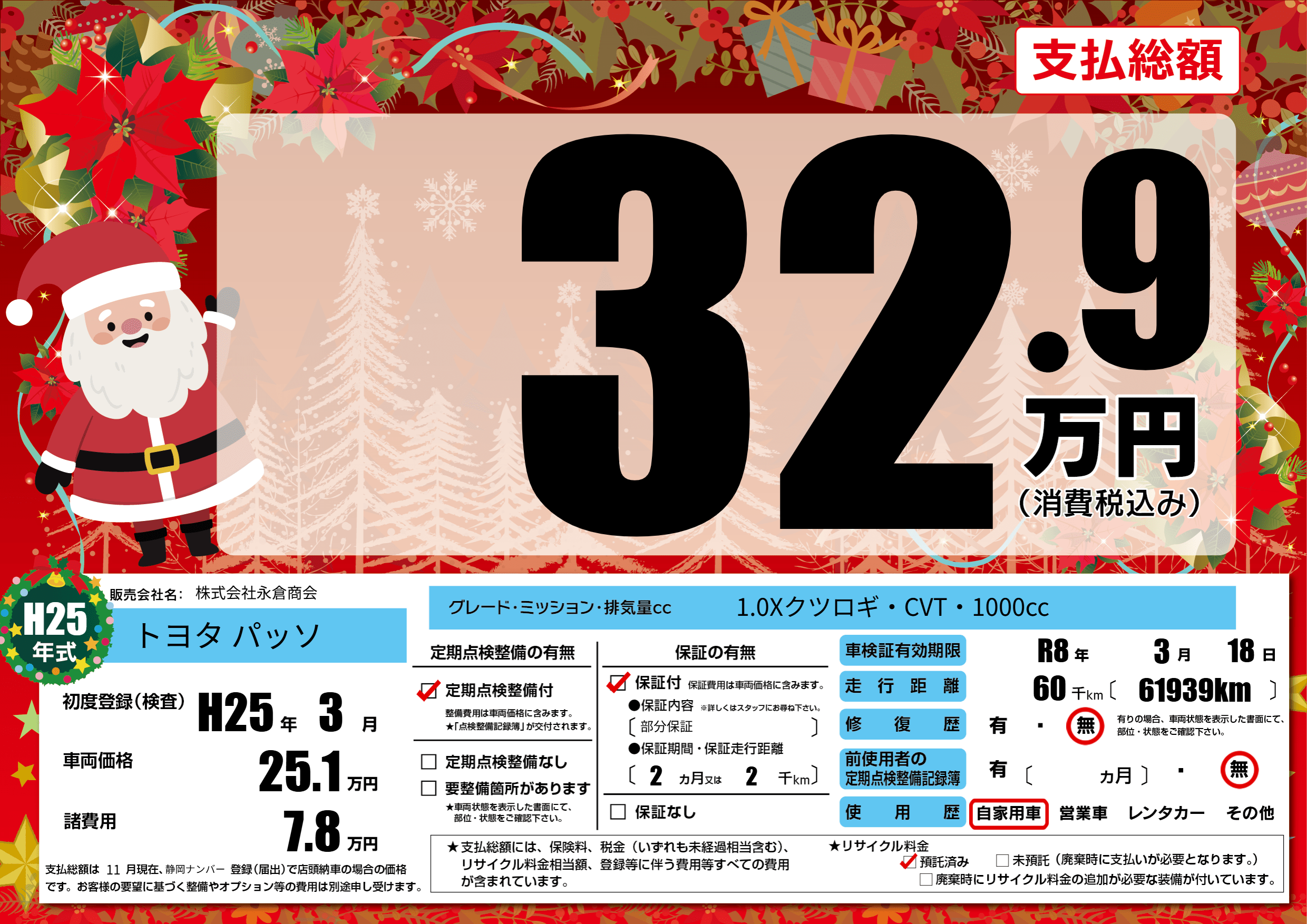 | 車名 | トヨタ パッソ | グレード ミッション 排気量 |