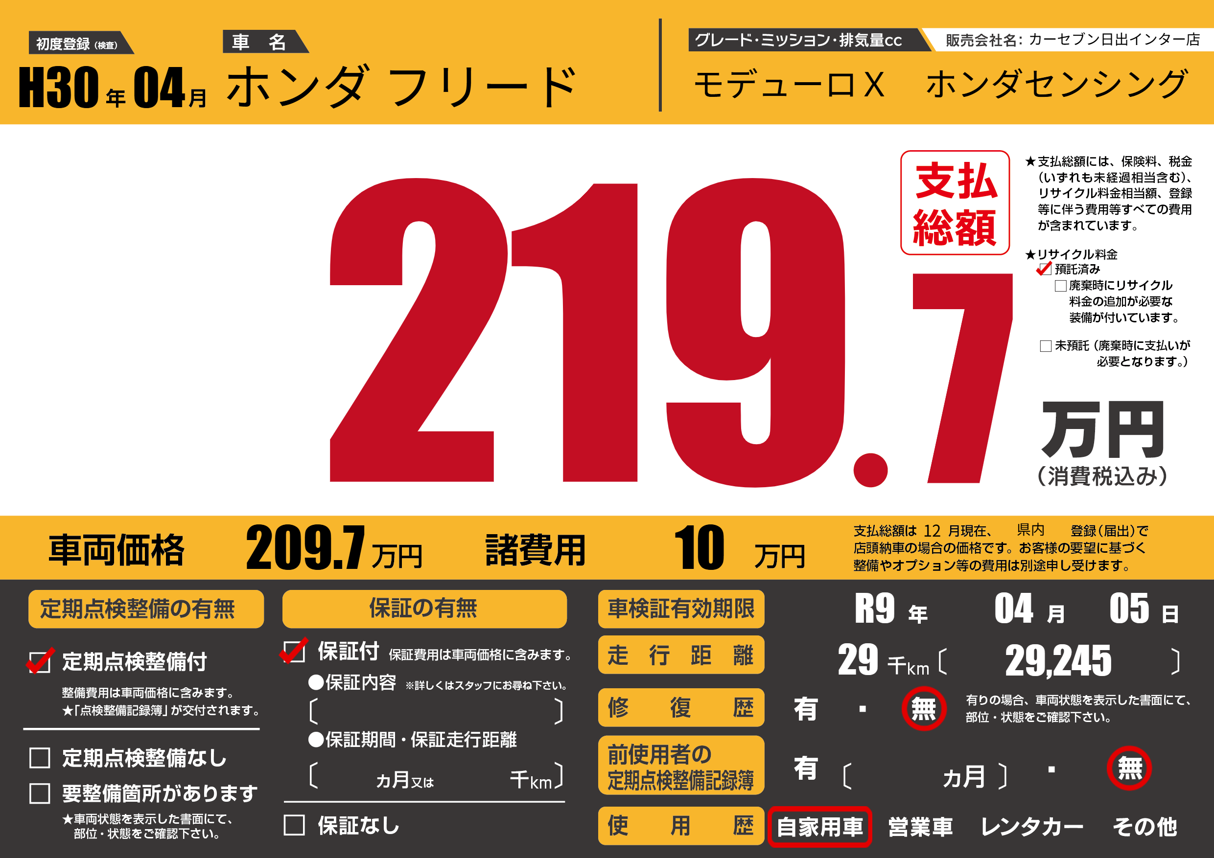 | 走行キロ | 2.9万km | 初年度登録 | H30年04月 |
