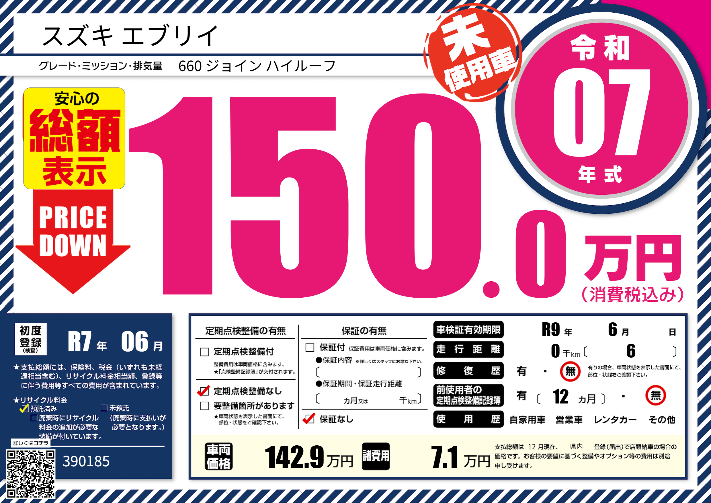 なし | 車検制限 | R9年6月---月 |