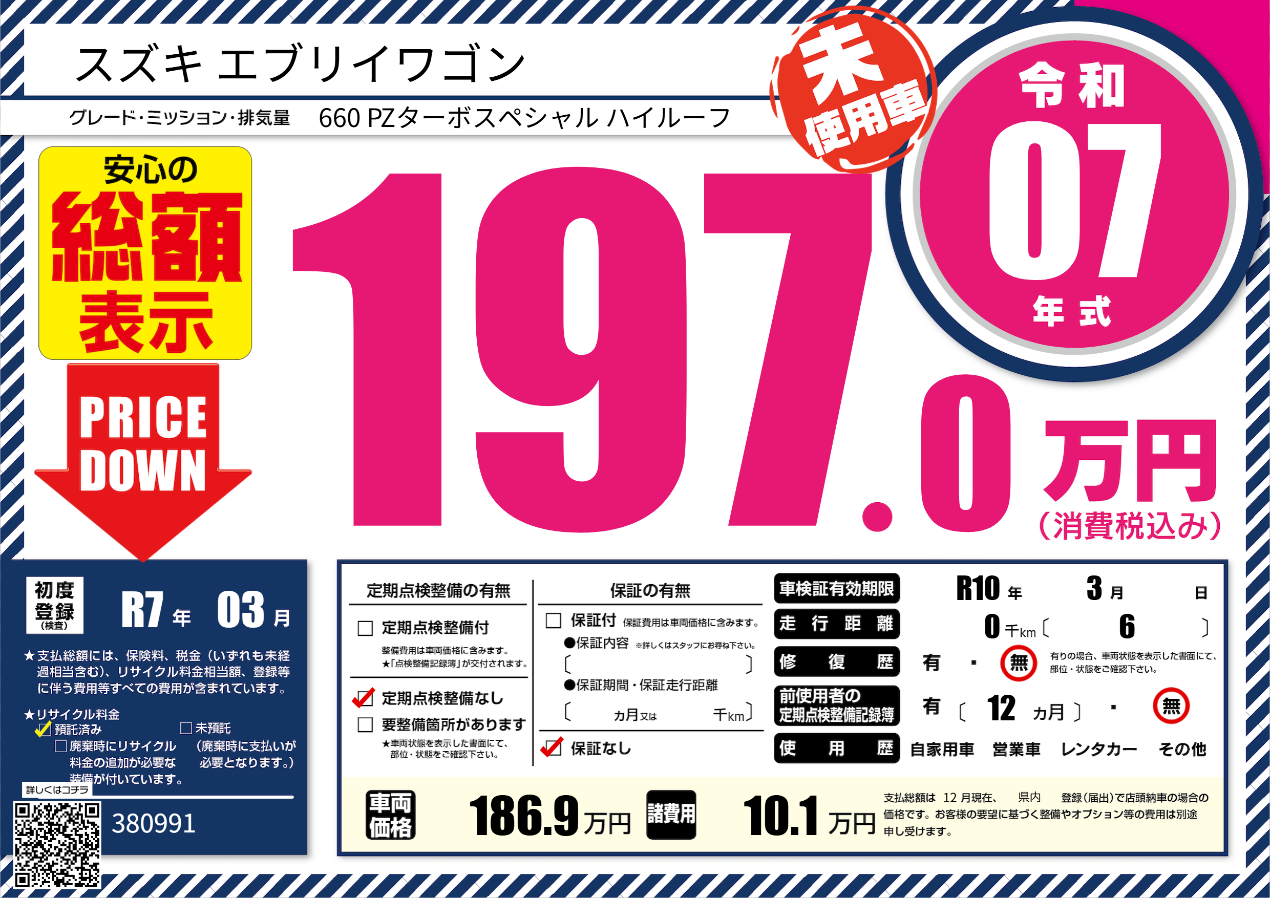 | 走行キロ | - | 初年度登録 | R7年03月 |