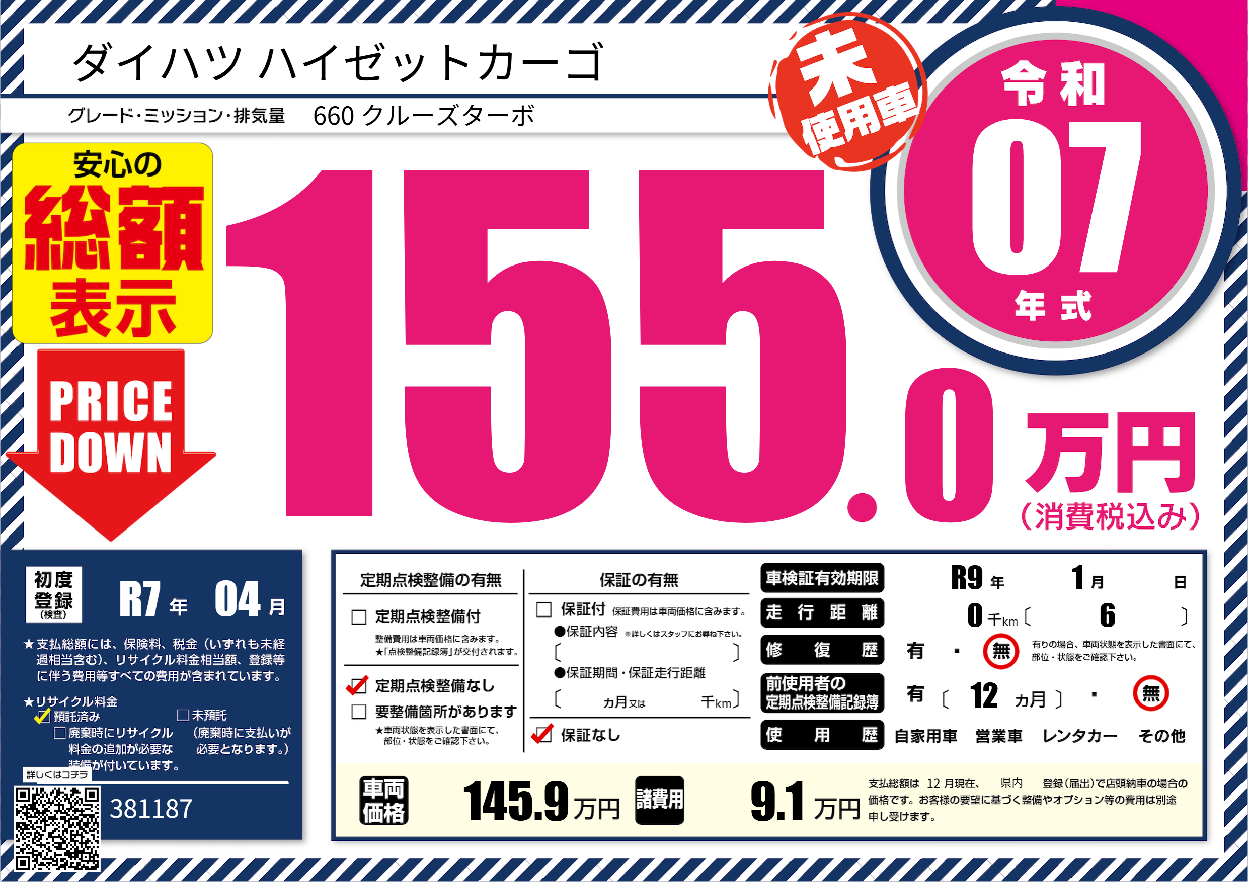 | 走行キロ | - | 初年度登録 | R7年04月 |