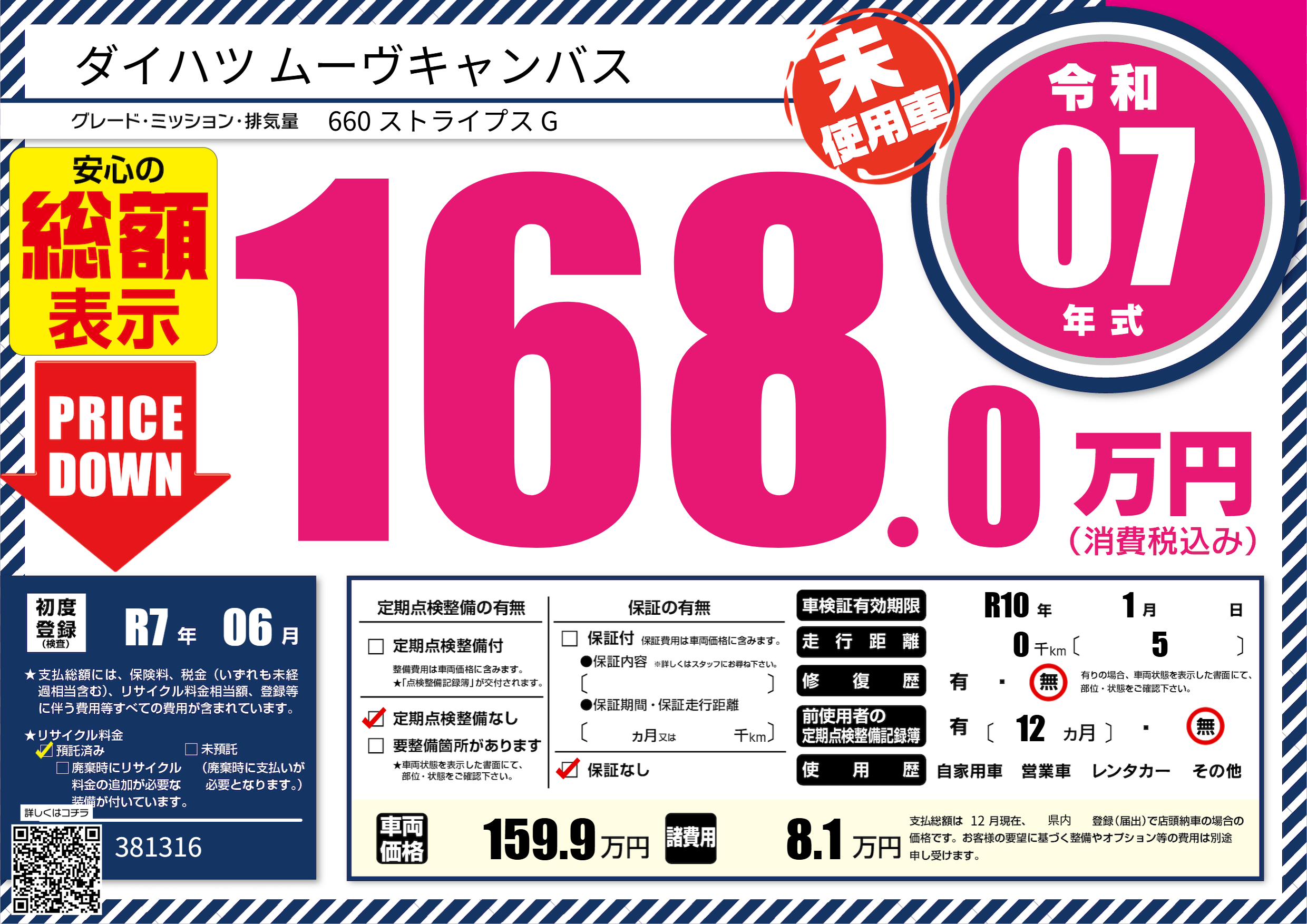 | 走行キロ | - | 初年度登録 | R7年06月 |