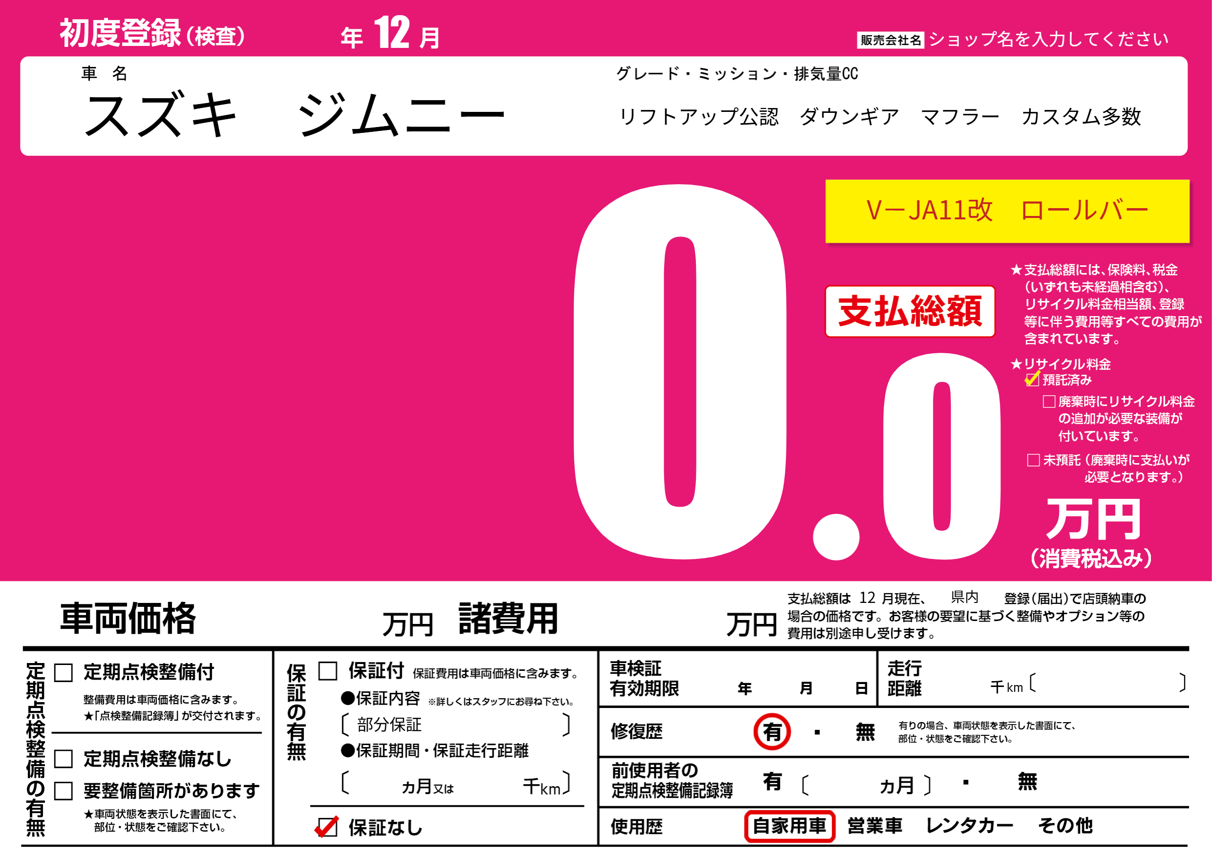 保証なし 保証内容(部分保証) ---ヶ月または()千kmまで |