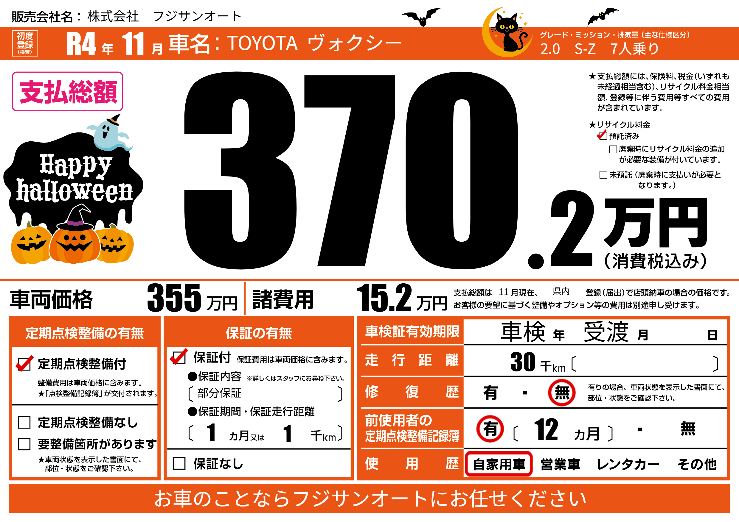 | 走行キロ | 3万km | 初年度登録 | R4年11月 |
