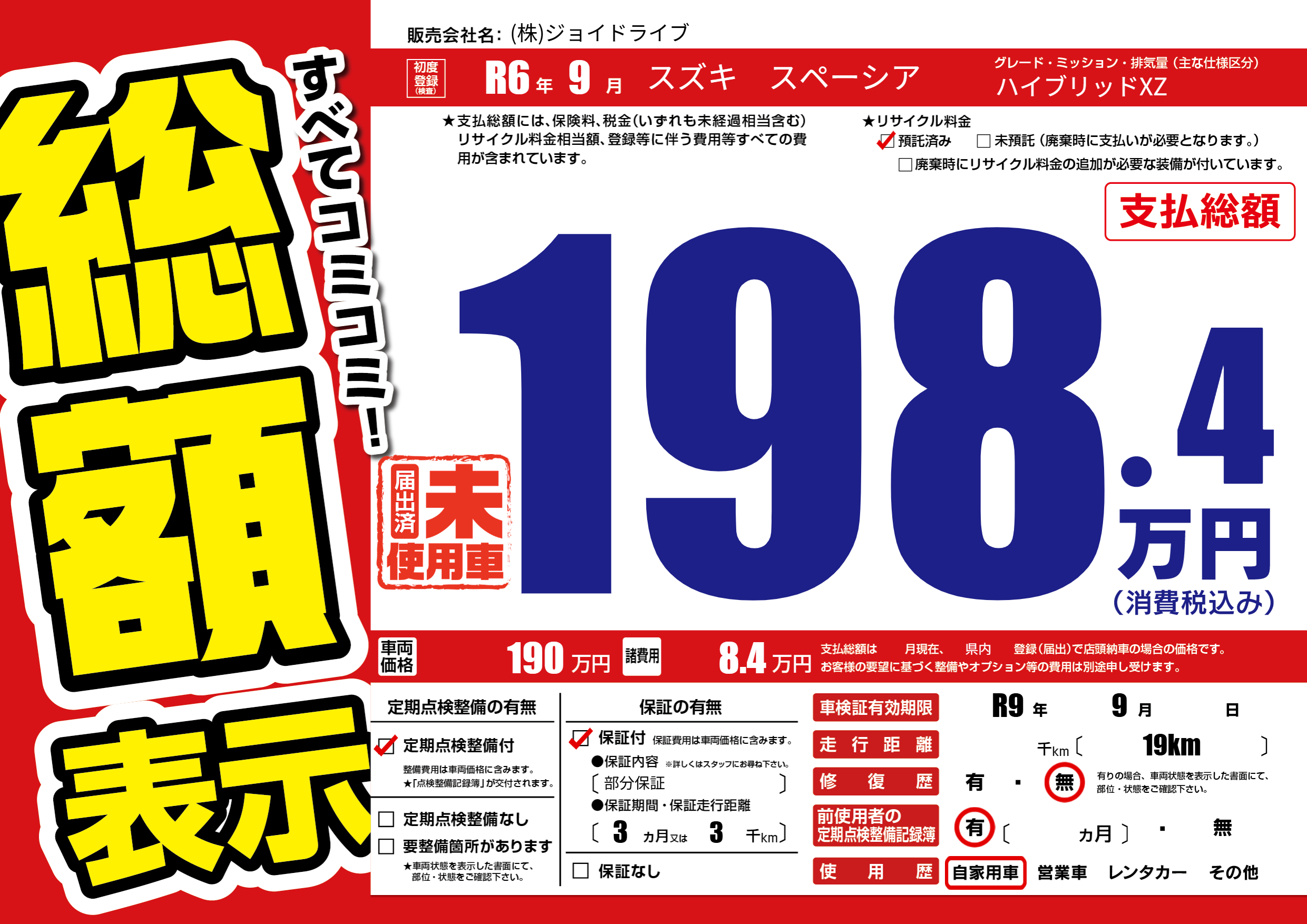| 走行キロ | - | 初年度登録 | R6年9月 |