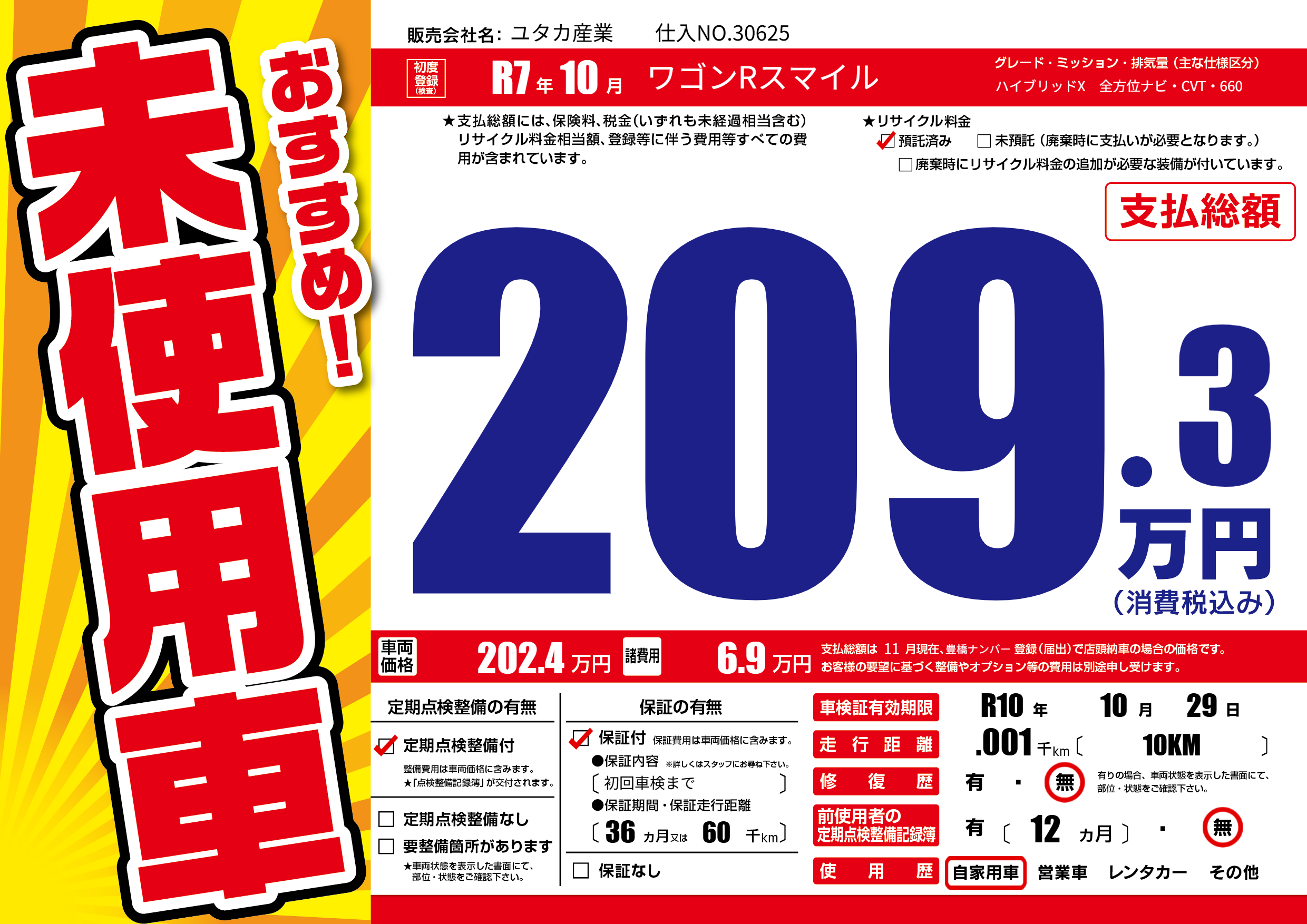 | 走行キロ | - | 初年度登録 | R7年10月 |