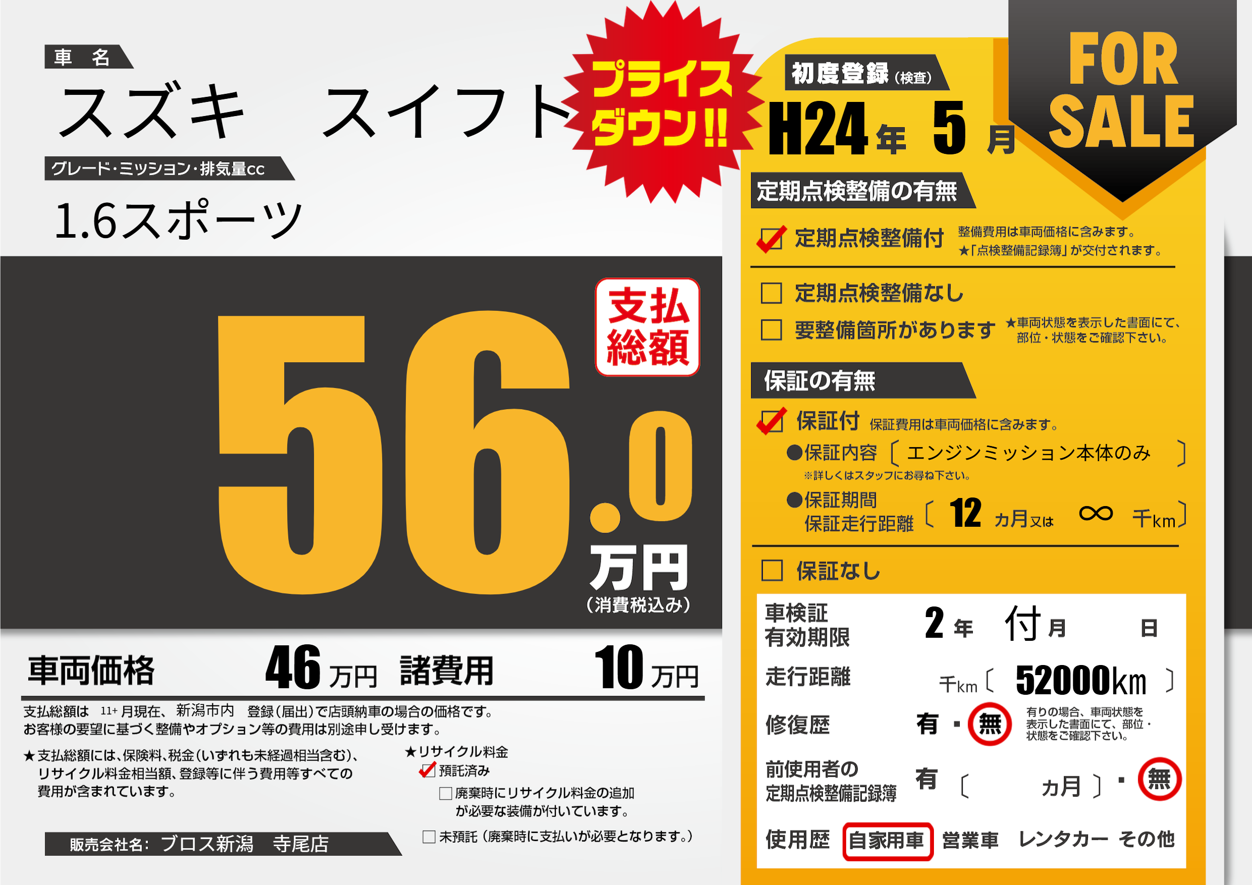 | 車名 | スズキ スイフト | グレード ミッション 排気量 |