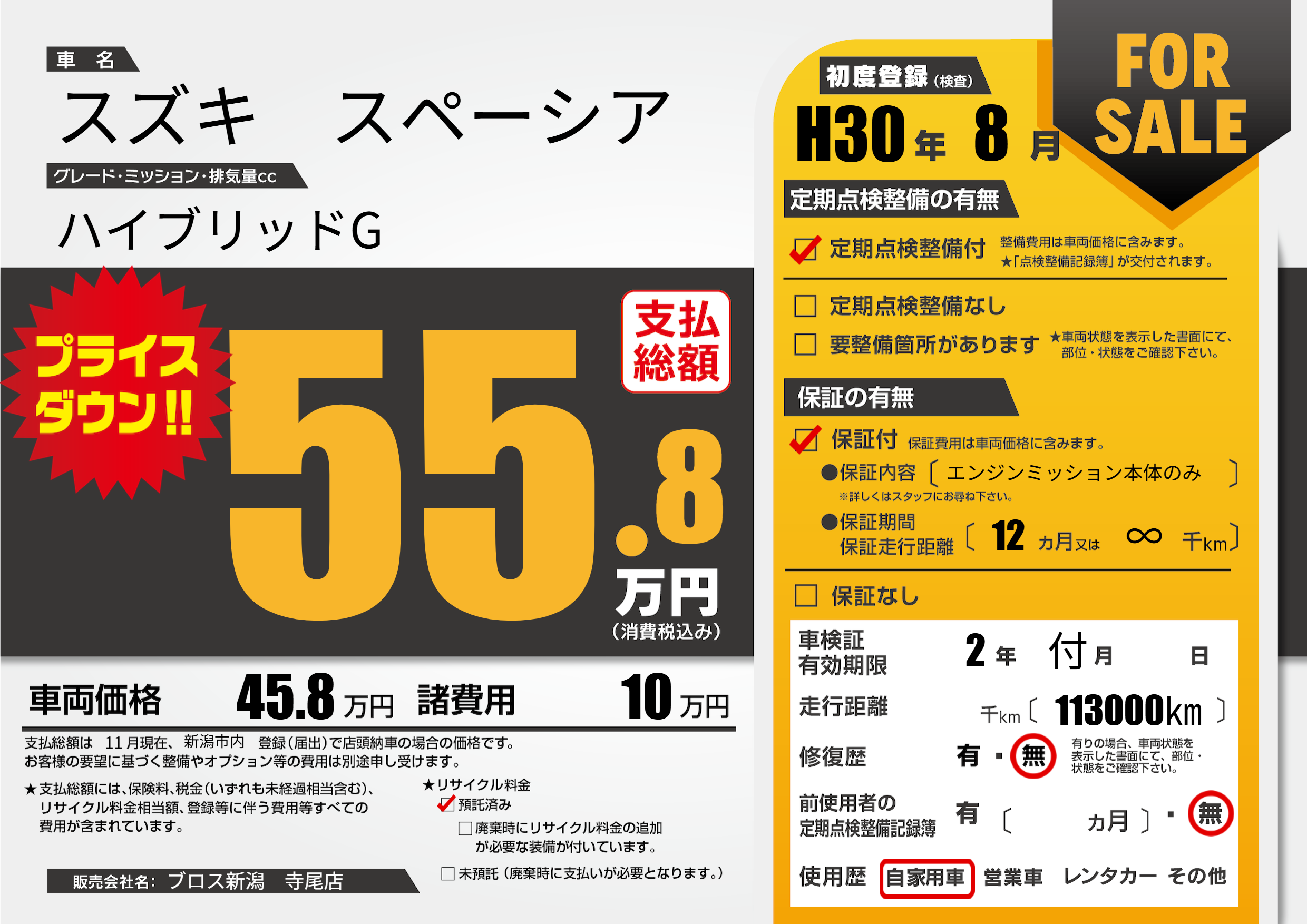 | 走行キロ | - | 初年度登録 | H30年8月 |