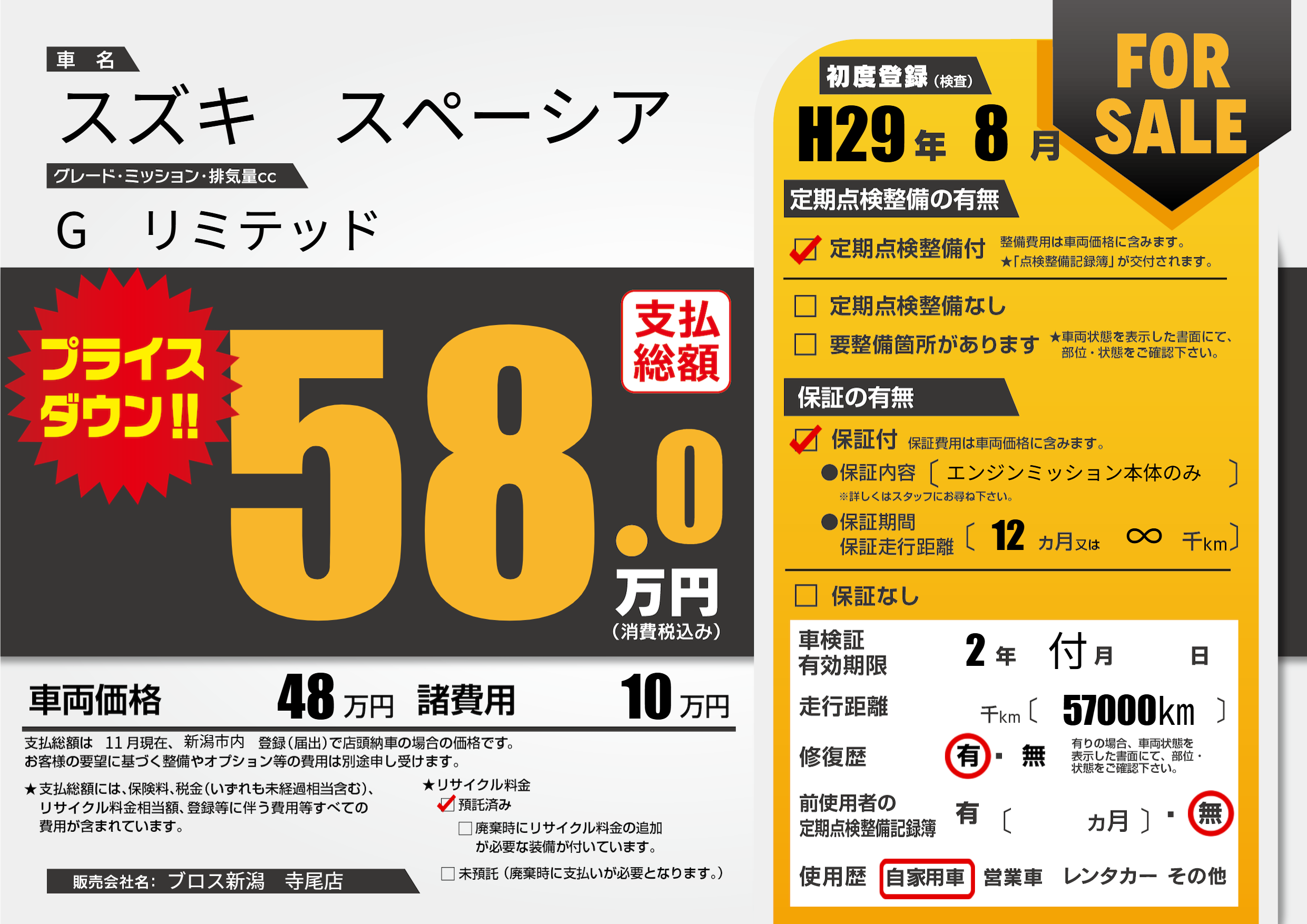 | 走行キロ | - | 初年度登録 | H29年8月 |