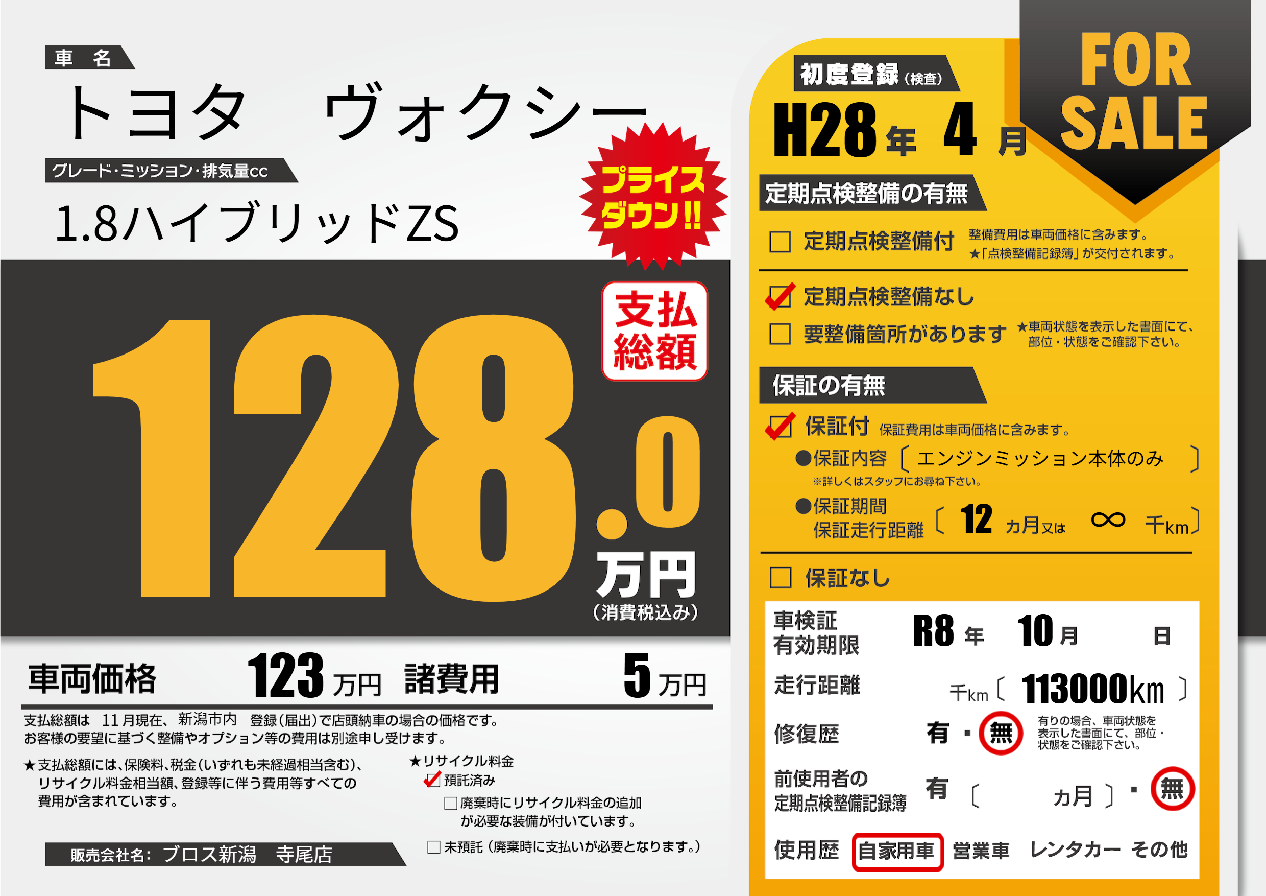 なし | 車検制限 | R8年10月---月 |