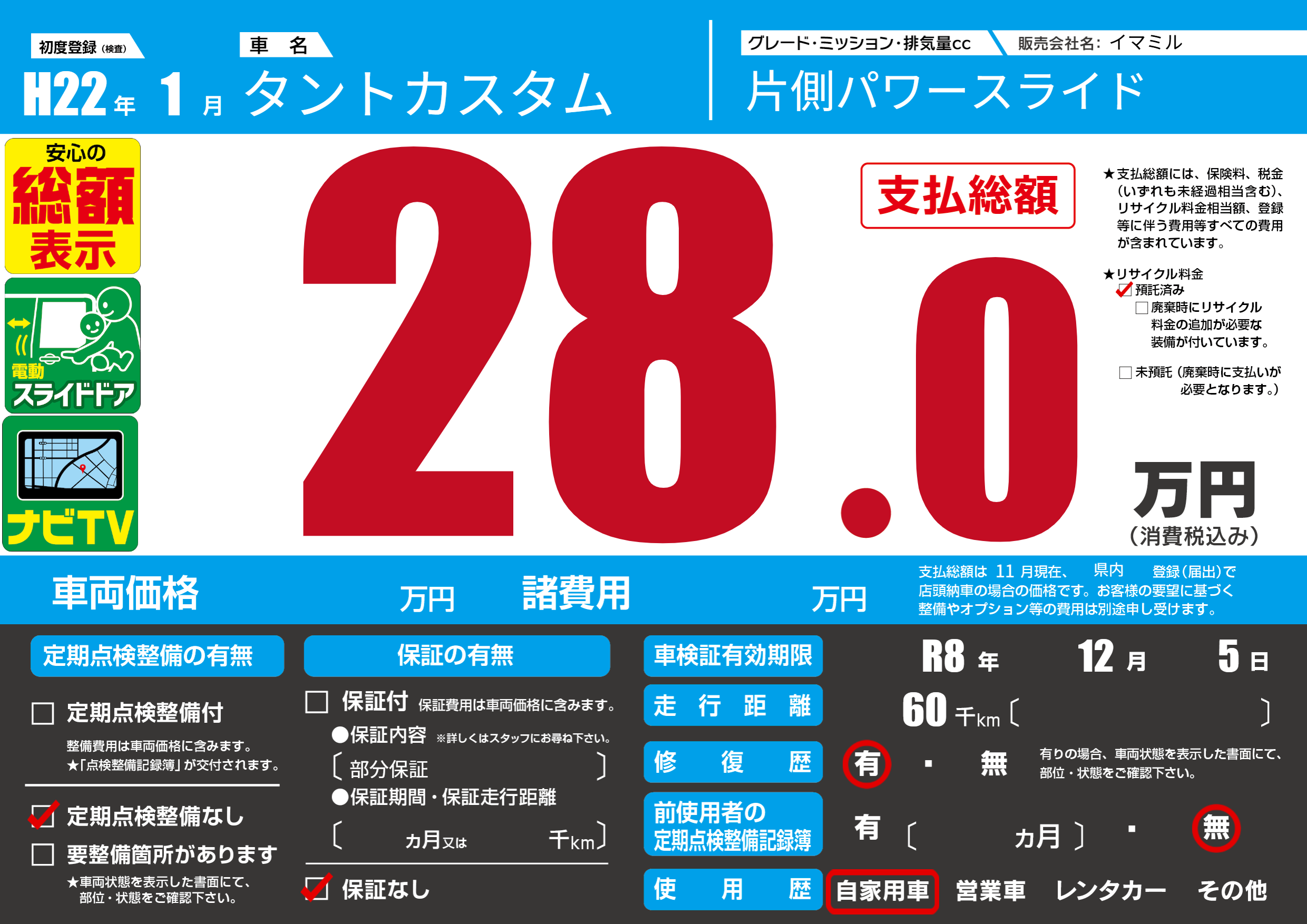 | 車名 | タントカスタム | グレード ミッション 排気量 |