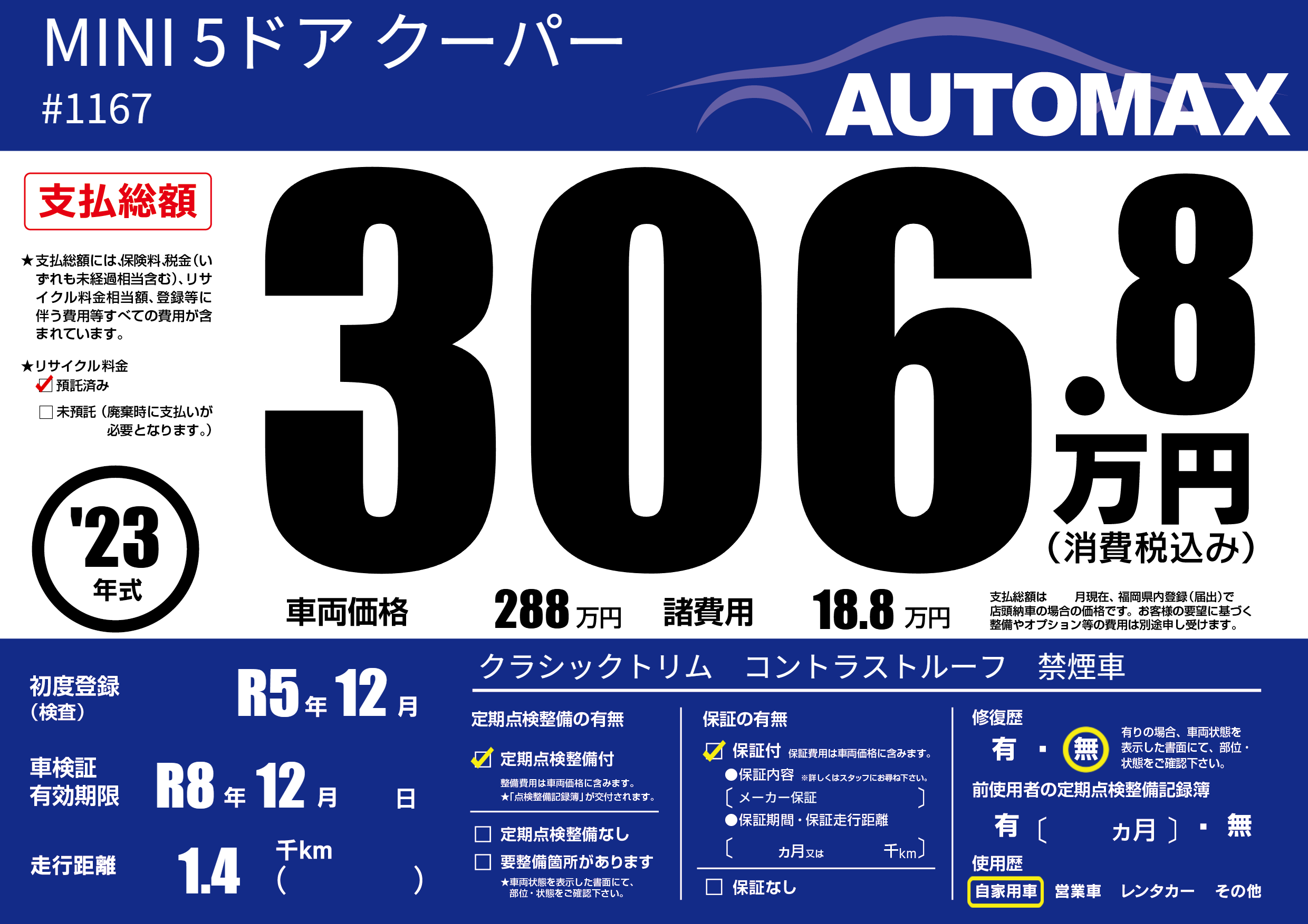 | 初年度登録 | R5年12月 | ||