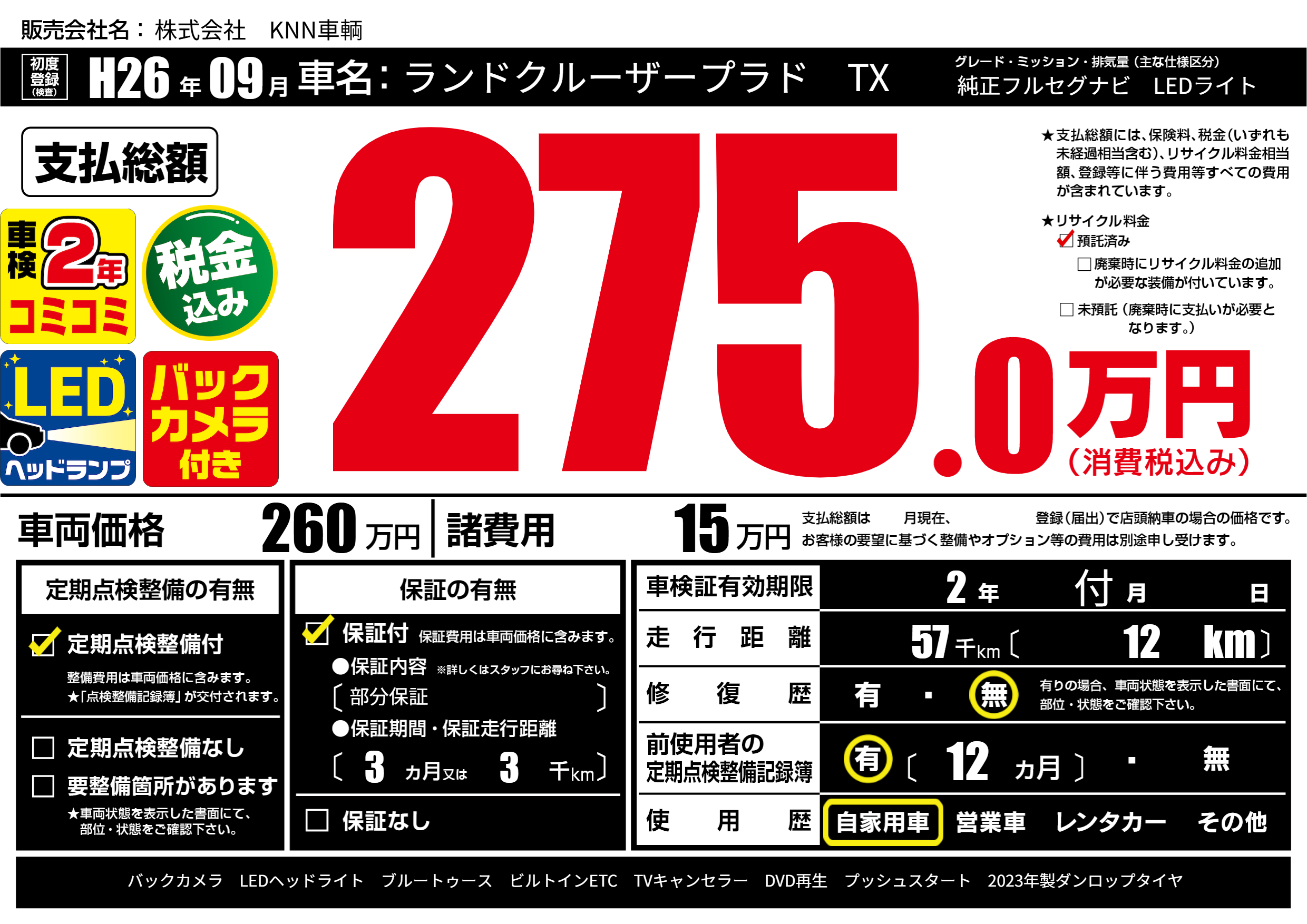 | 定期点検整備 | 定期点検整備あり | ||