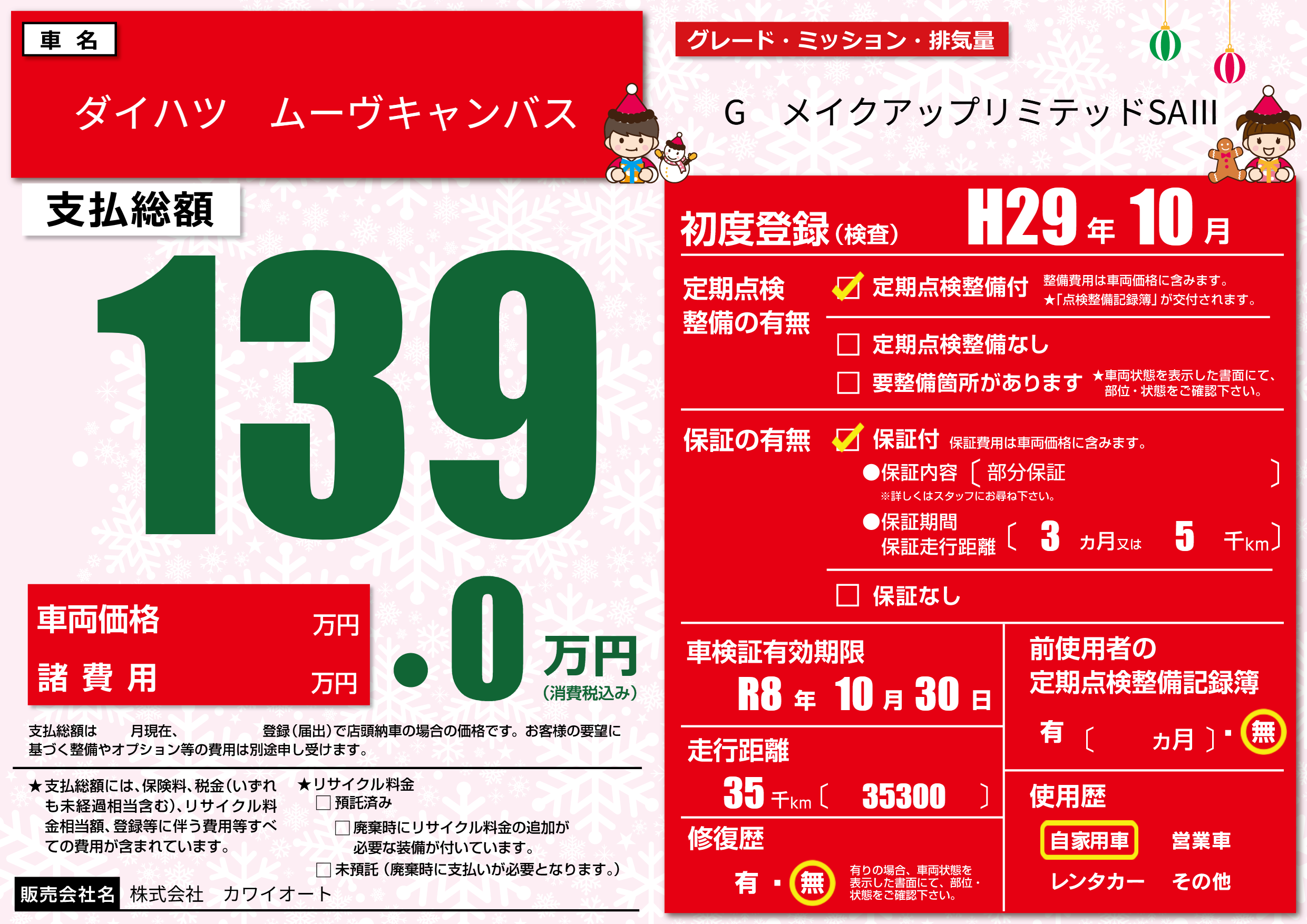 | 車検制限 | R8年 10月 30日 | ||