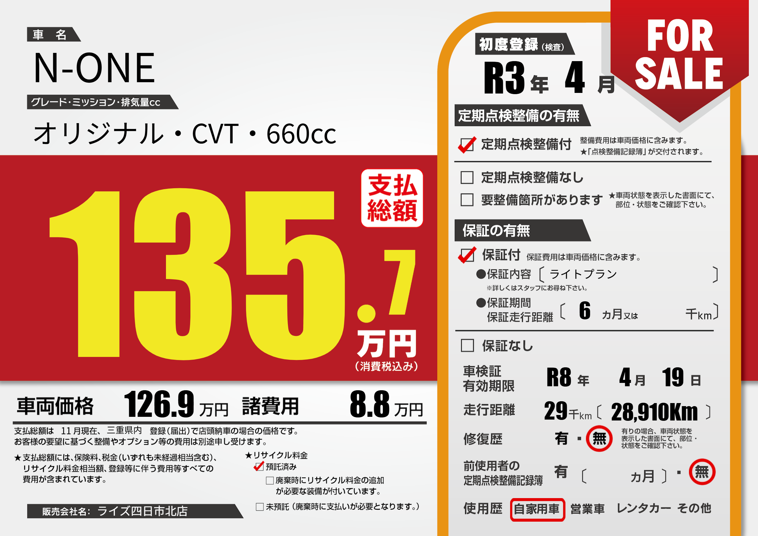 初年度登録 R3年4月