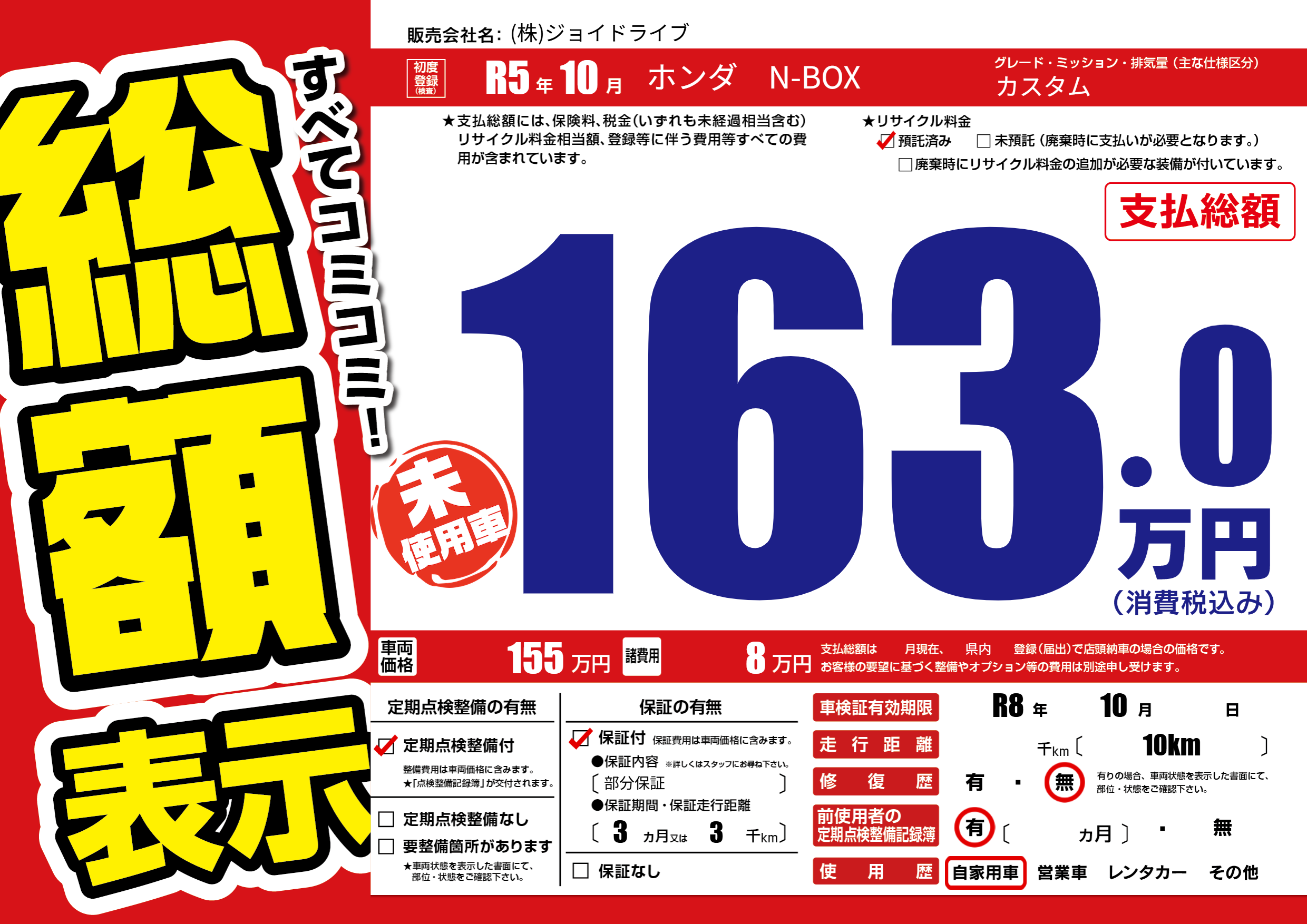 | 走行キロ | - | 初年度登録 | R5年10月 |
