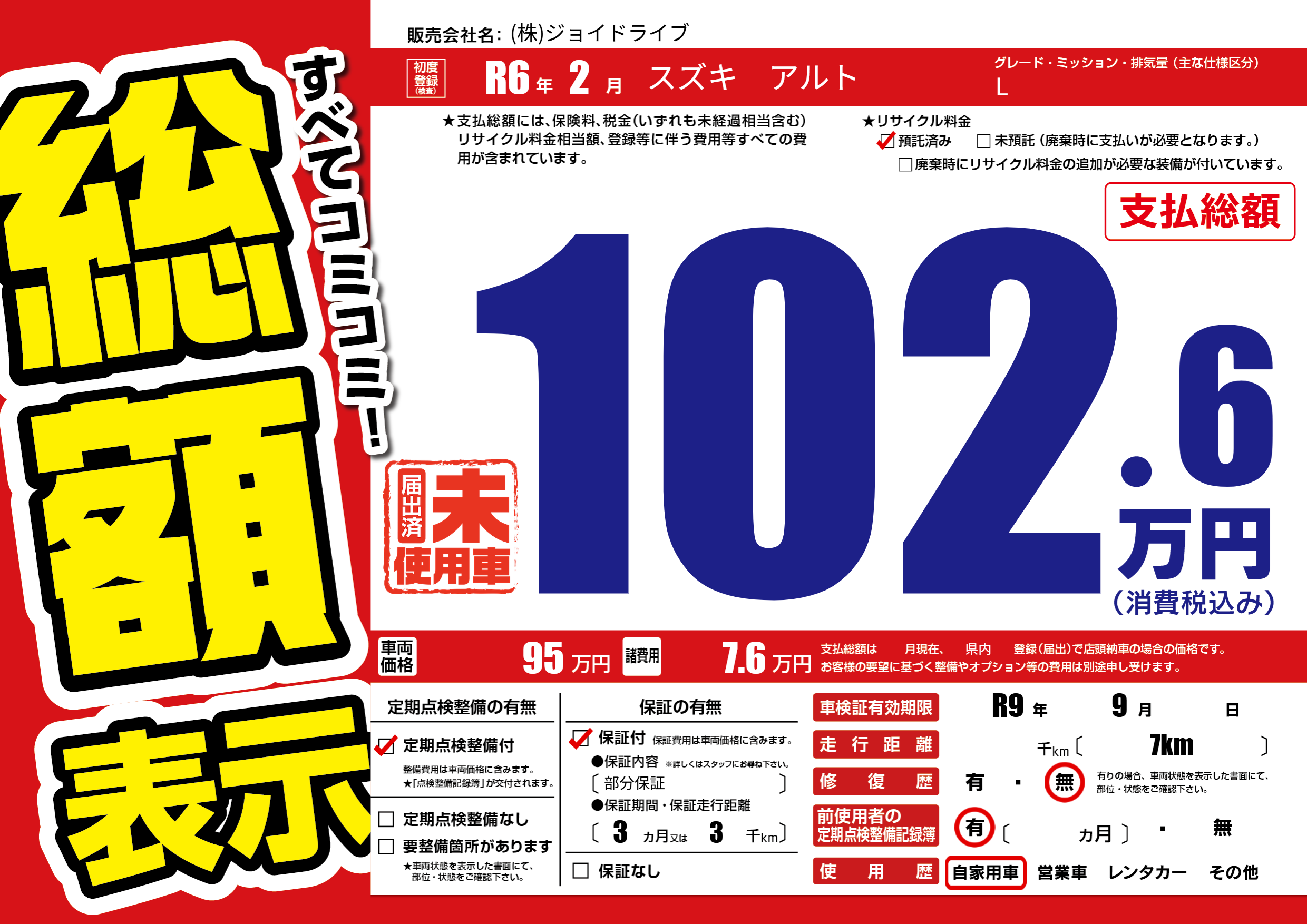 | 走行キロ | - | 初年度登録 | R6年2月 |