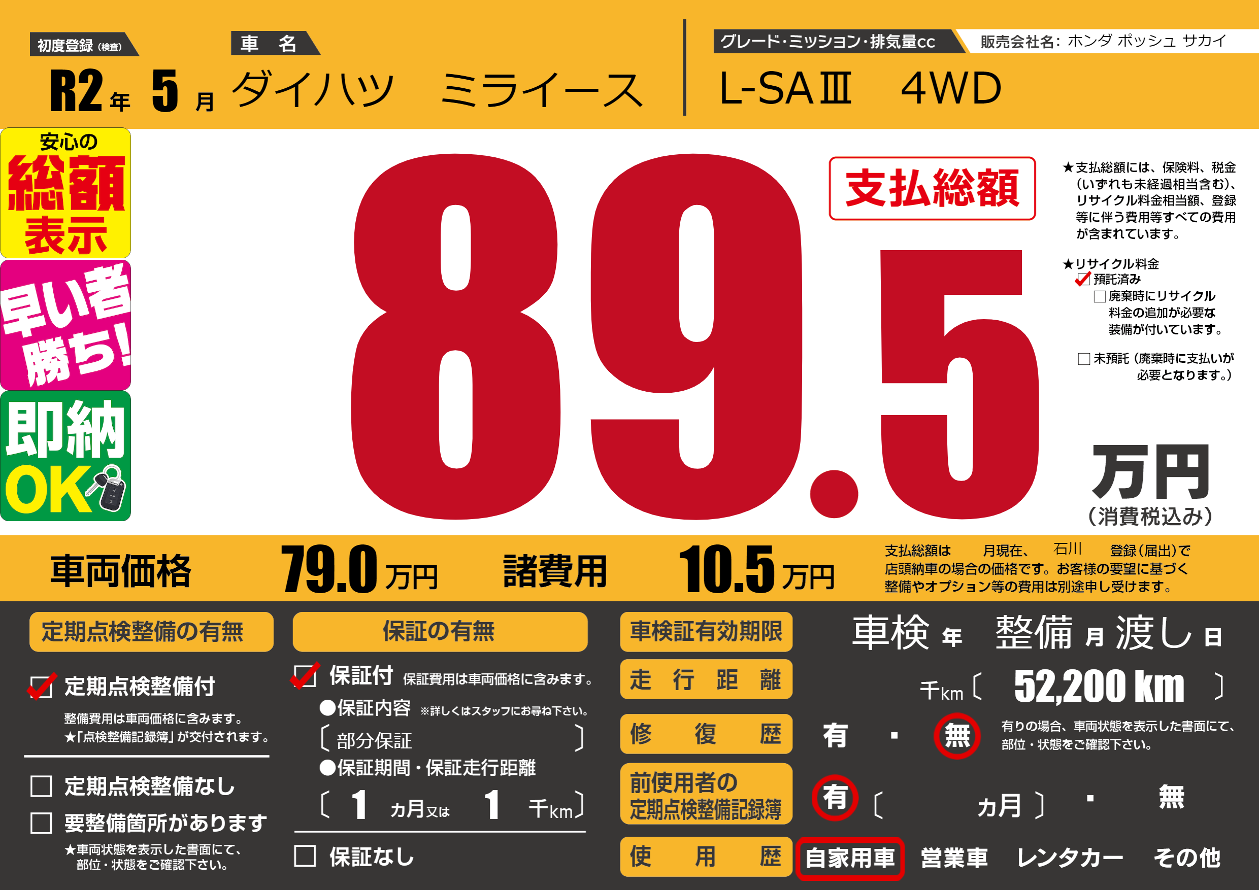 | 定期点検整備 | 定期点検整備あり | ||