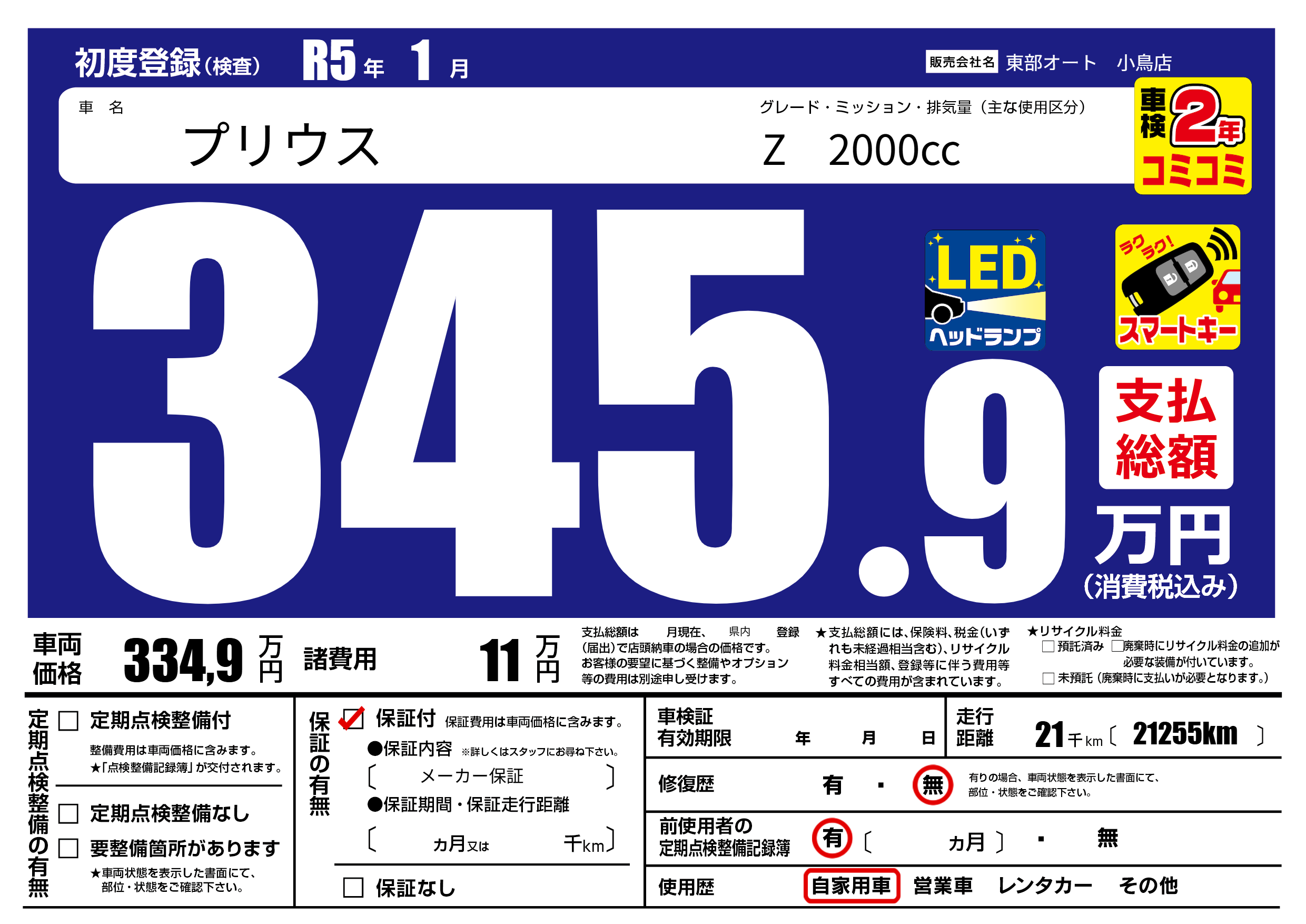| 走行キロ | 2.1万km | 初年度登録 | R5年1月 |