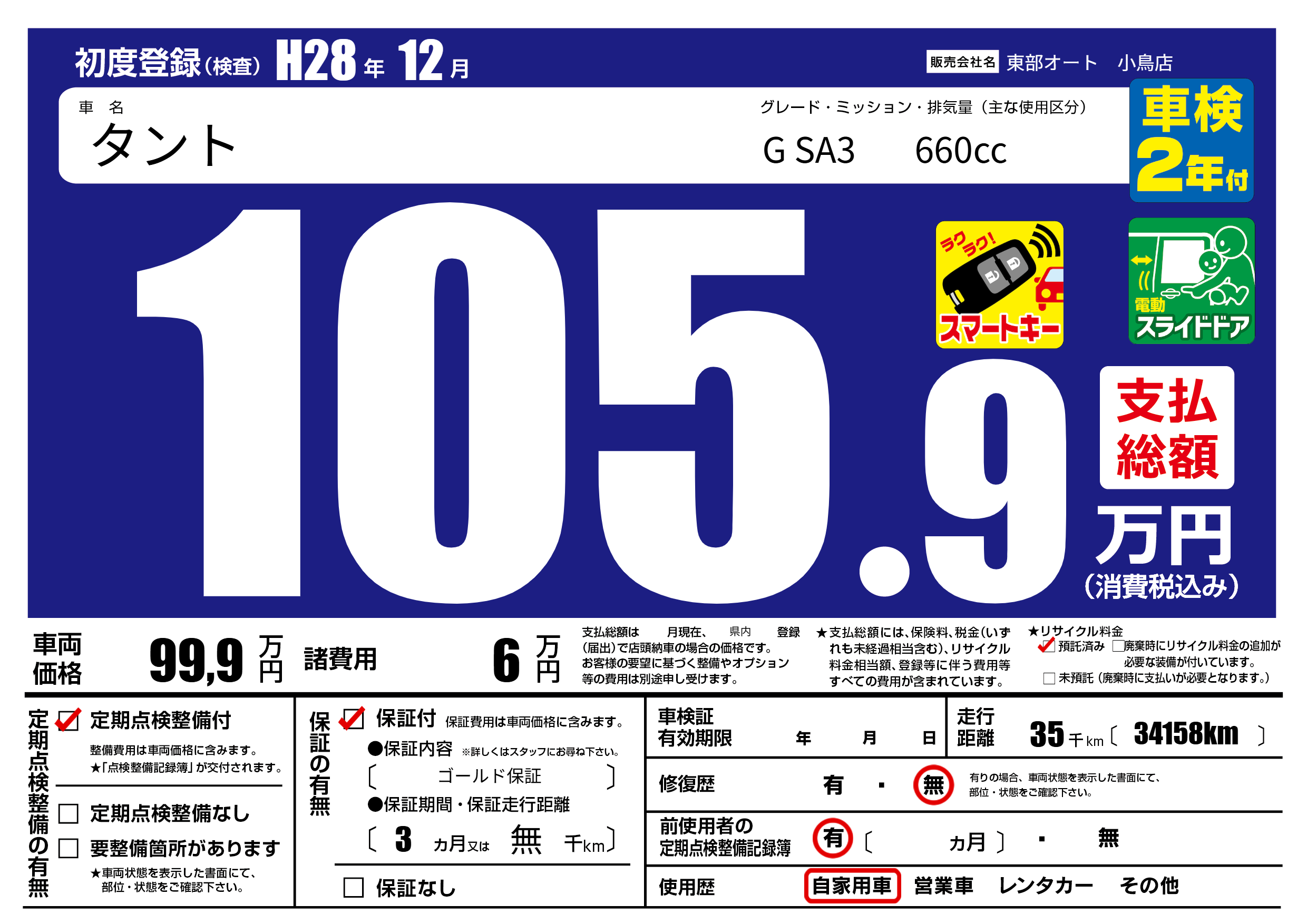保証付き 保証内容( ゴールド保証) 3ヶ月または(無)千kmまで |