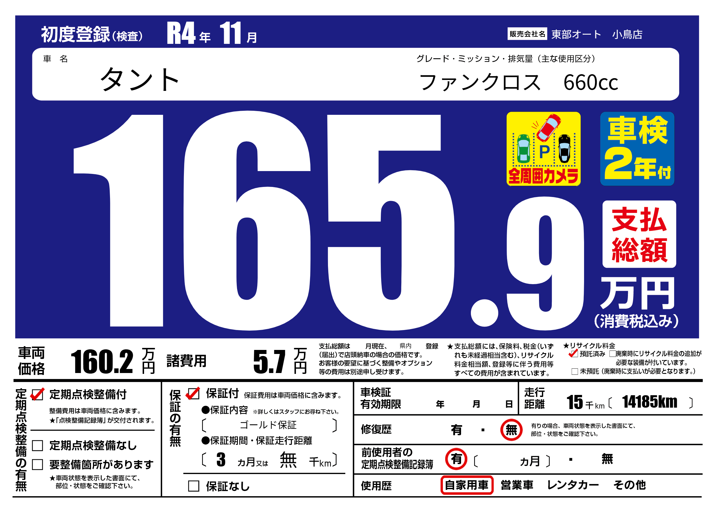 保証付き 保証内容( ゴールド保証) 3ヶ月または(無)千kmまで |