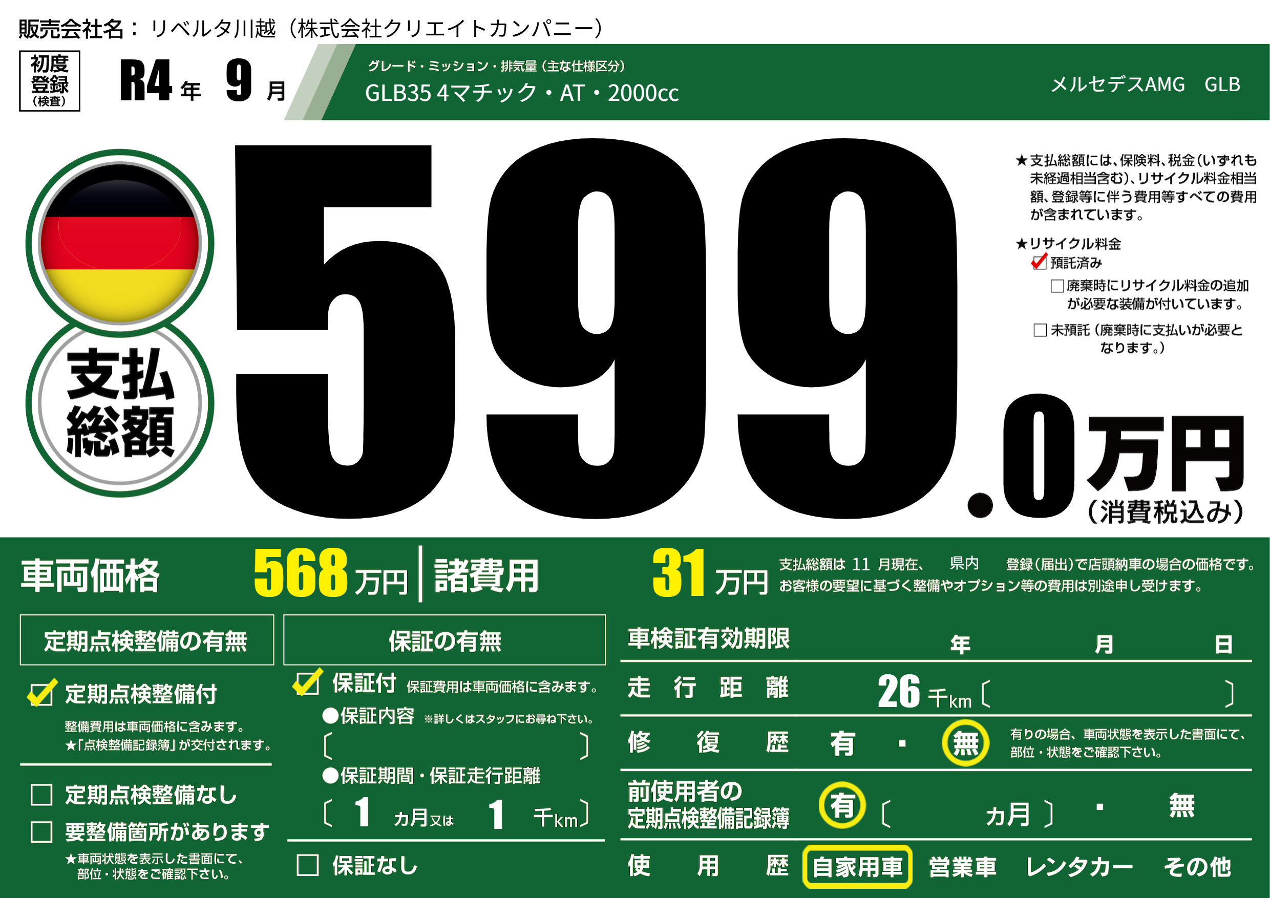 | 初年度登録 | R4年9月 | ||