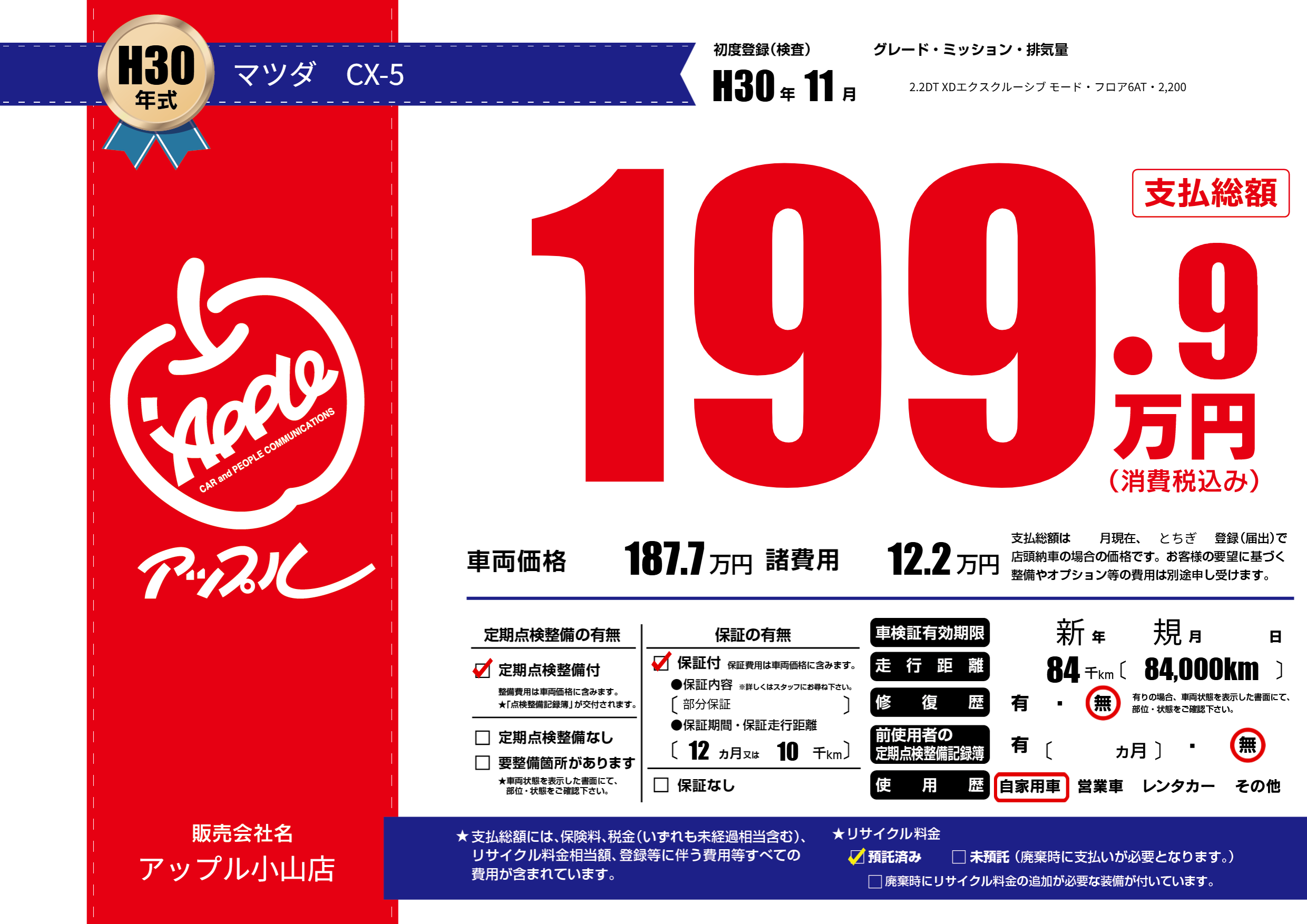 | 初年度登録 | H30年11月 | ||