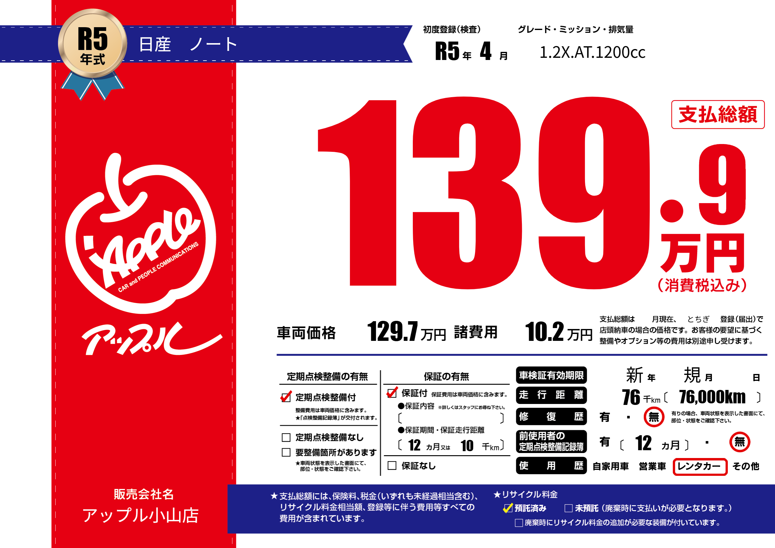 | 車名 | 日産 ノート | グレード ミッション 排気量 |