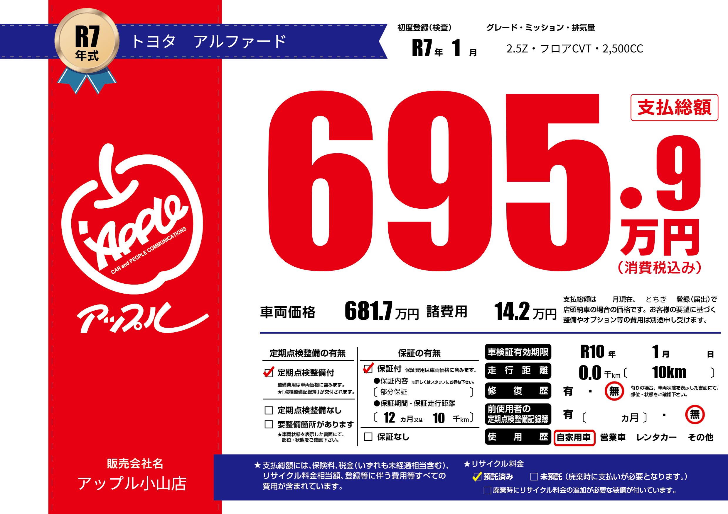 | 走行キロ | - | 初年度登録 | R7年1月 |