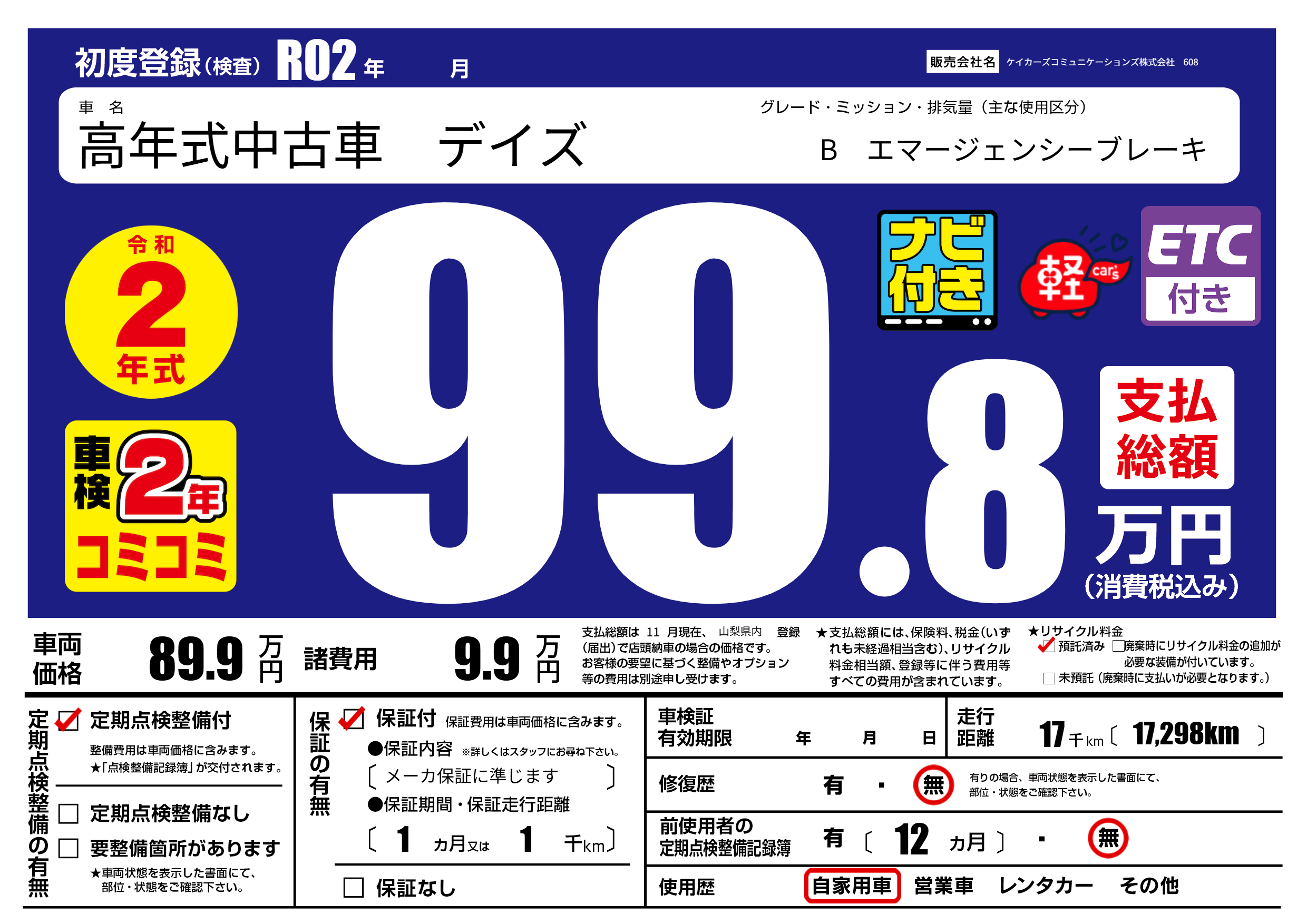 | 定期点検整備 | 定期点検整備あり | ||