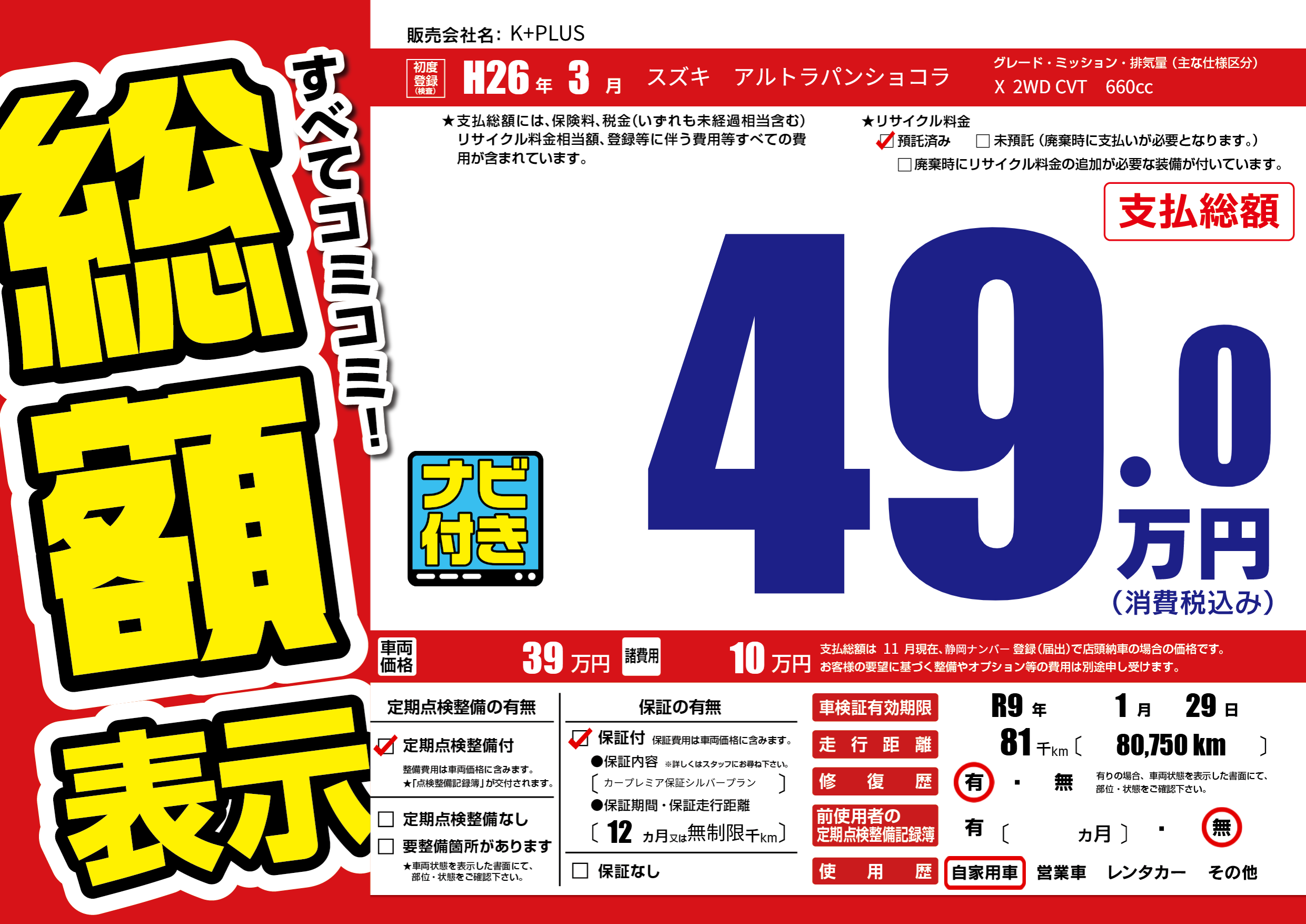 なし | 車検制限 | R9年1月29月 |