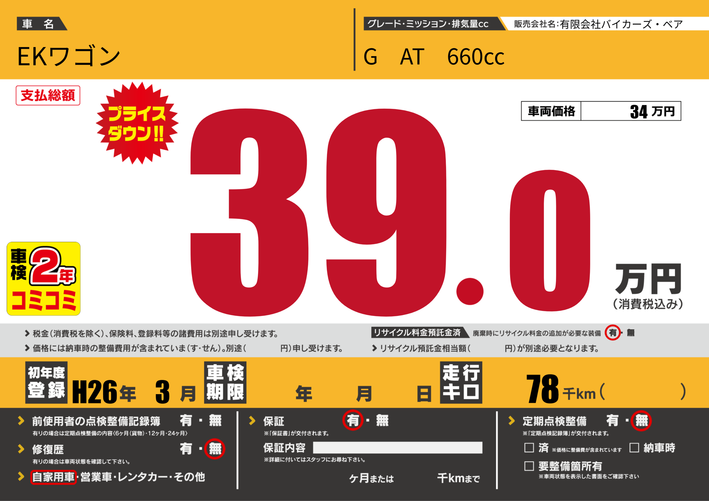 初年度登録 H26年3月