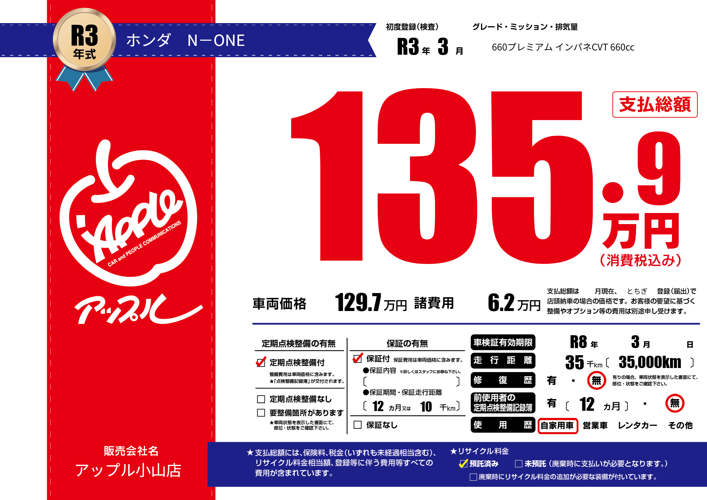 | 走行キロ | 3.5万km | 初年度登録 | R3年3月 |