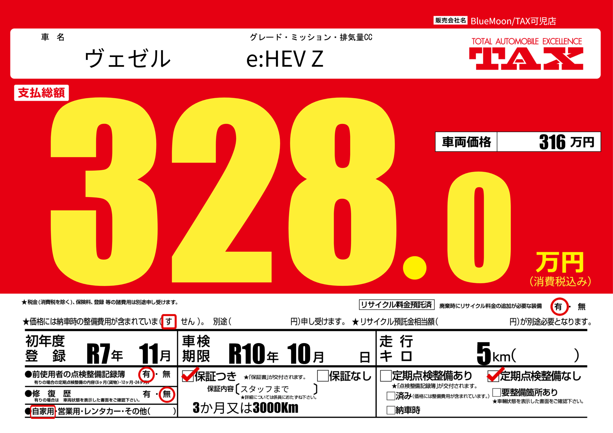 あり | 車検制限 | R10年10月---月 |