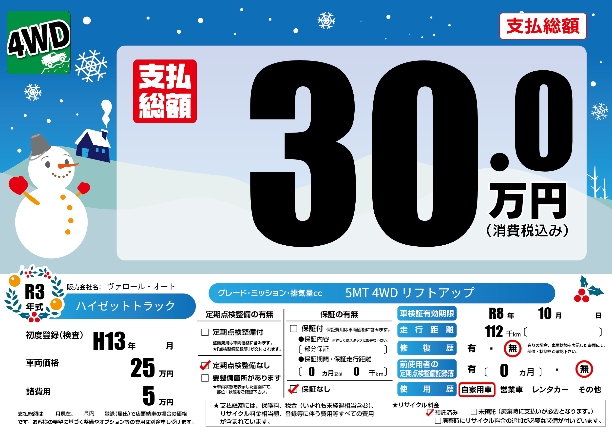 保証なし 保証内容(部分保証) 0ヶ月または(0)千kmまで |