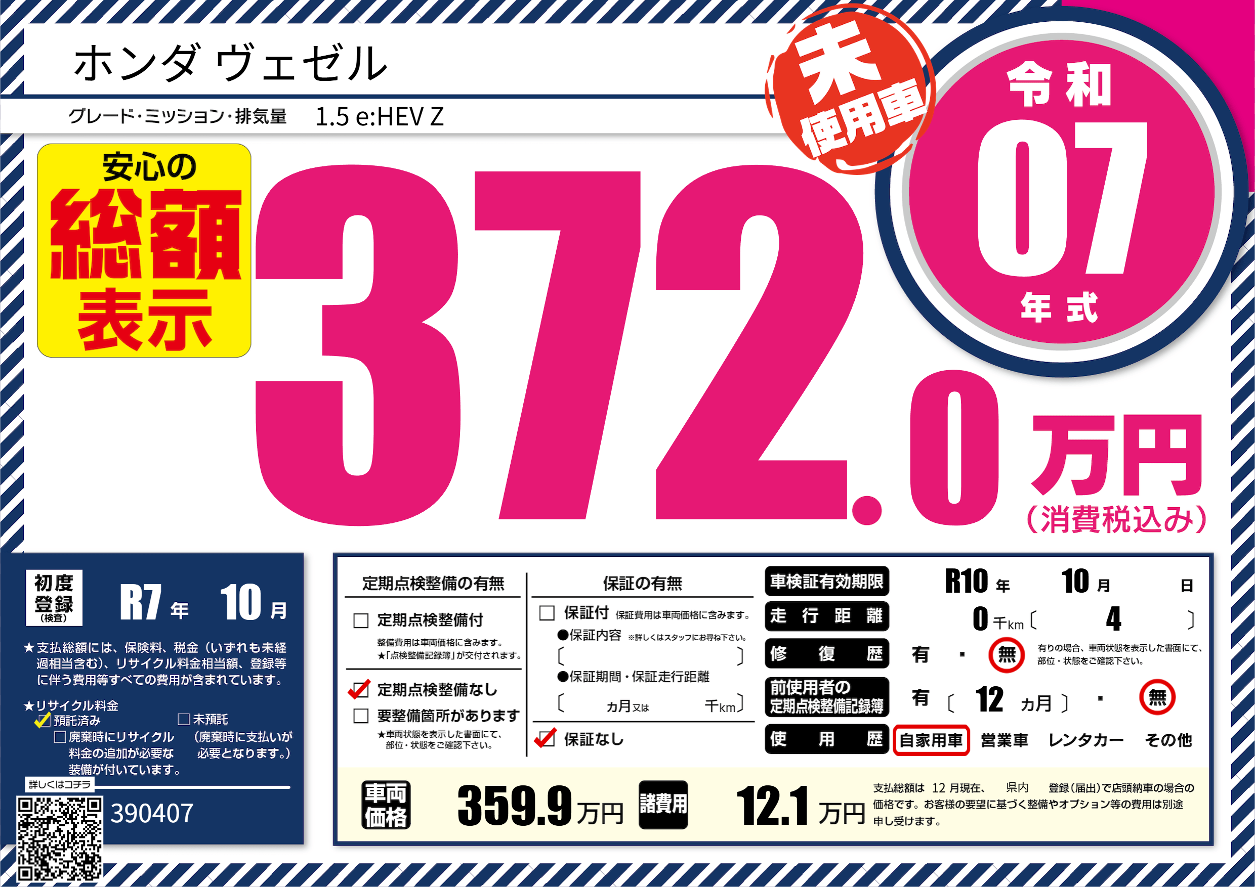 | 初年度登録 | R7年10月 | ||