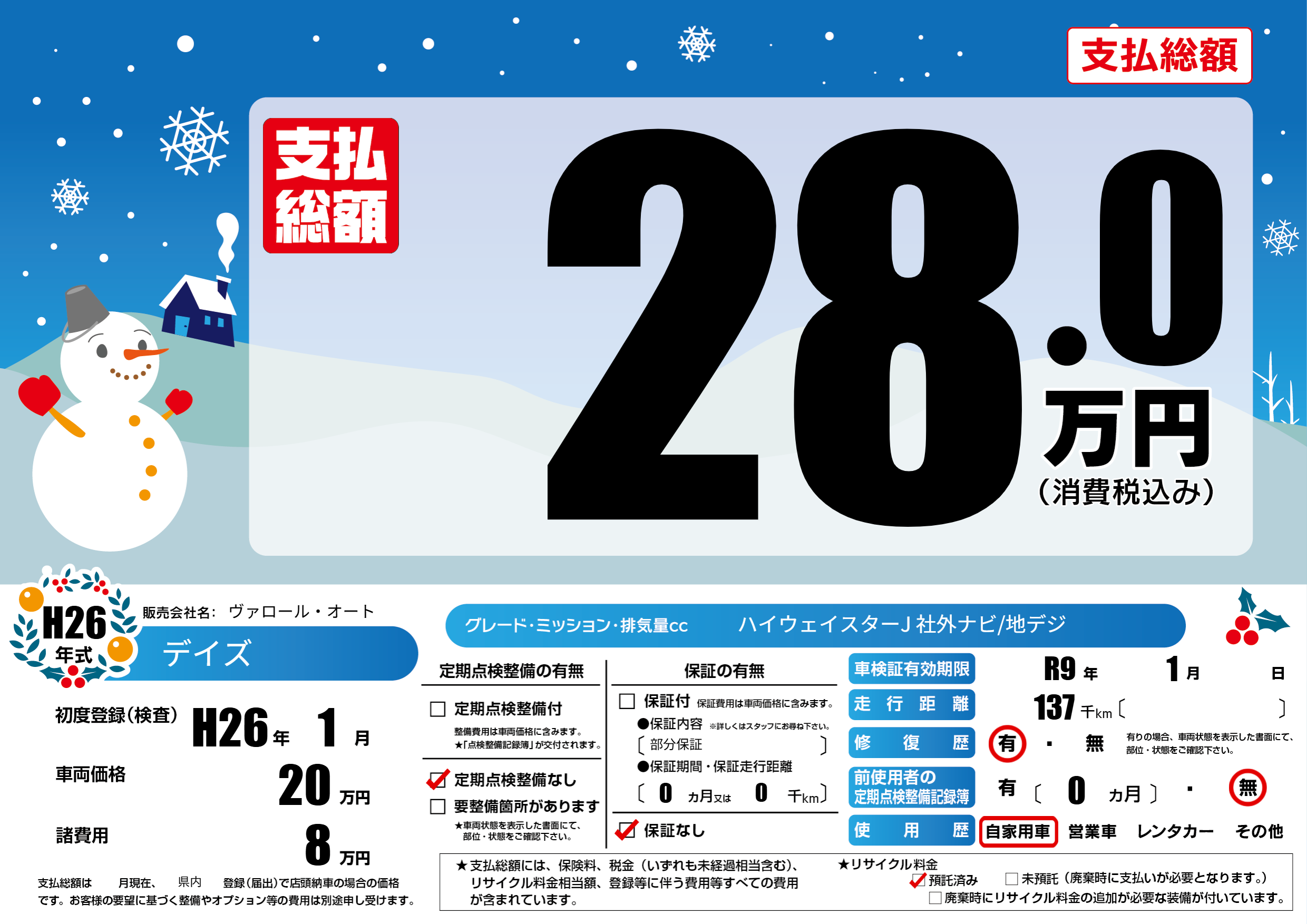 | 車名 | デイズ | グレード ミッション 排気量 |