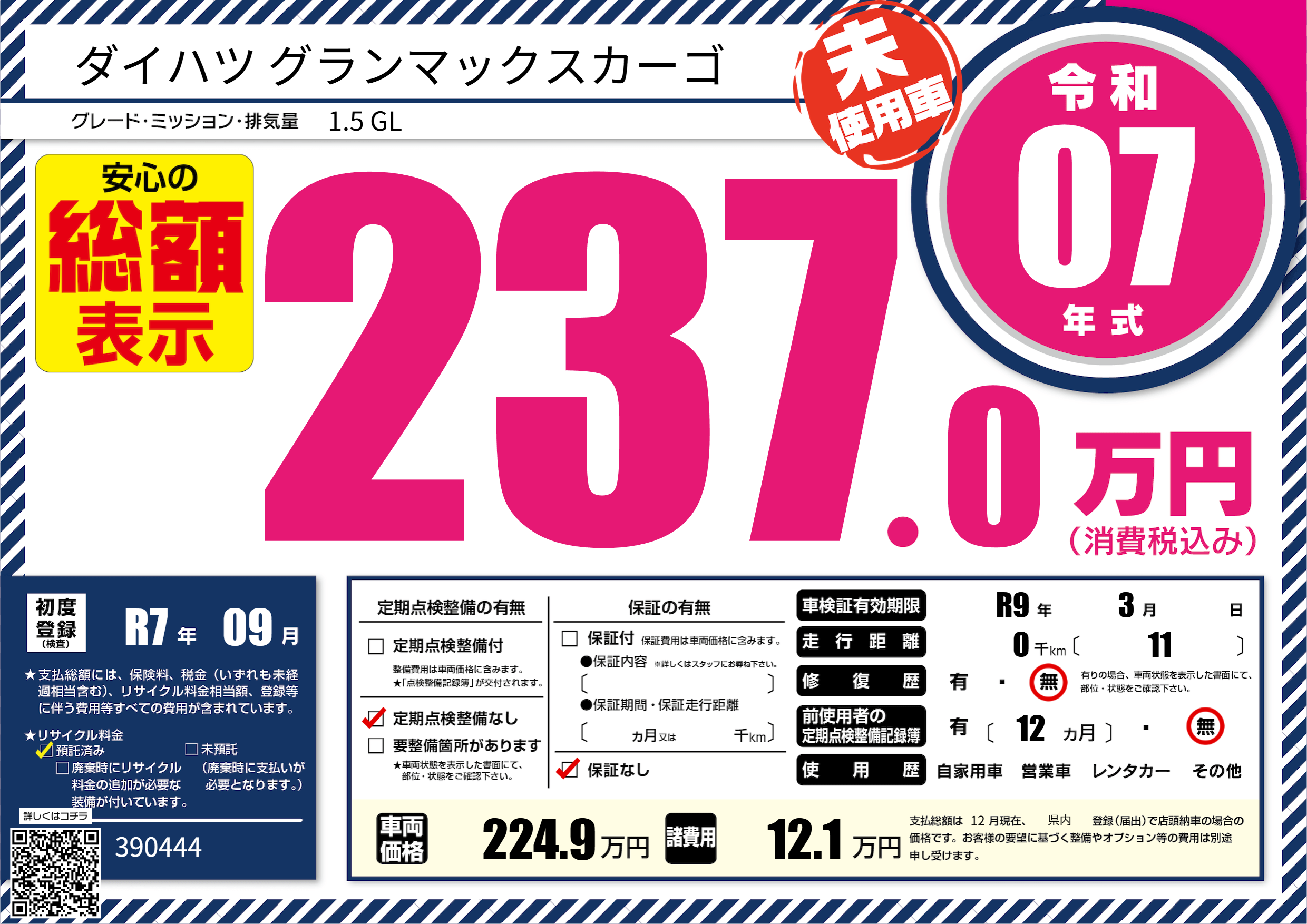 | 車検制限 | R9年 3月 - 日 | ||