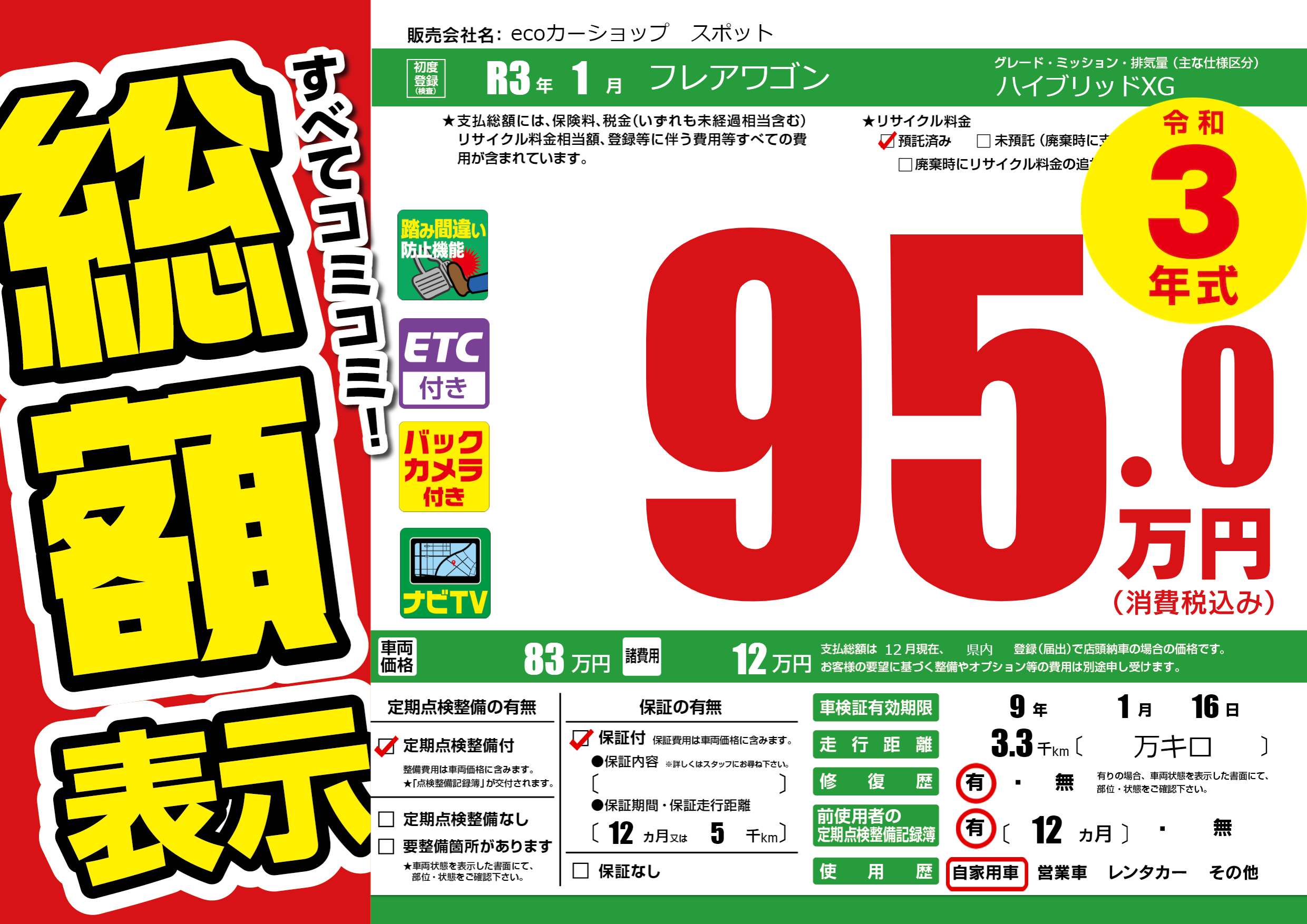 | 車名 | フレアワゴン | グレード ミッション 排気量 |