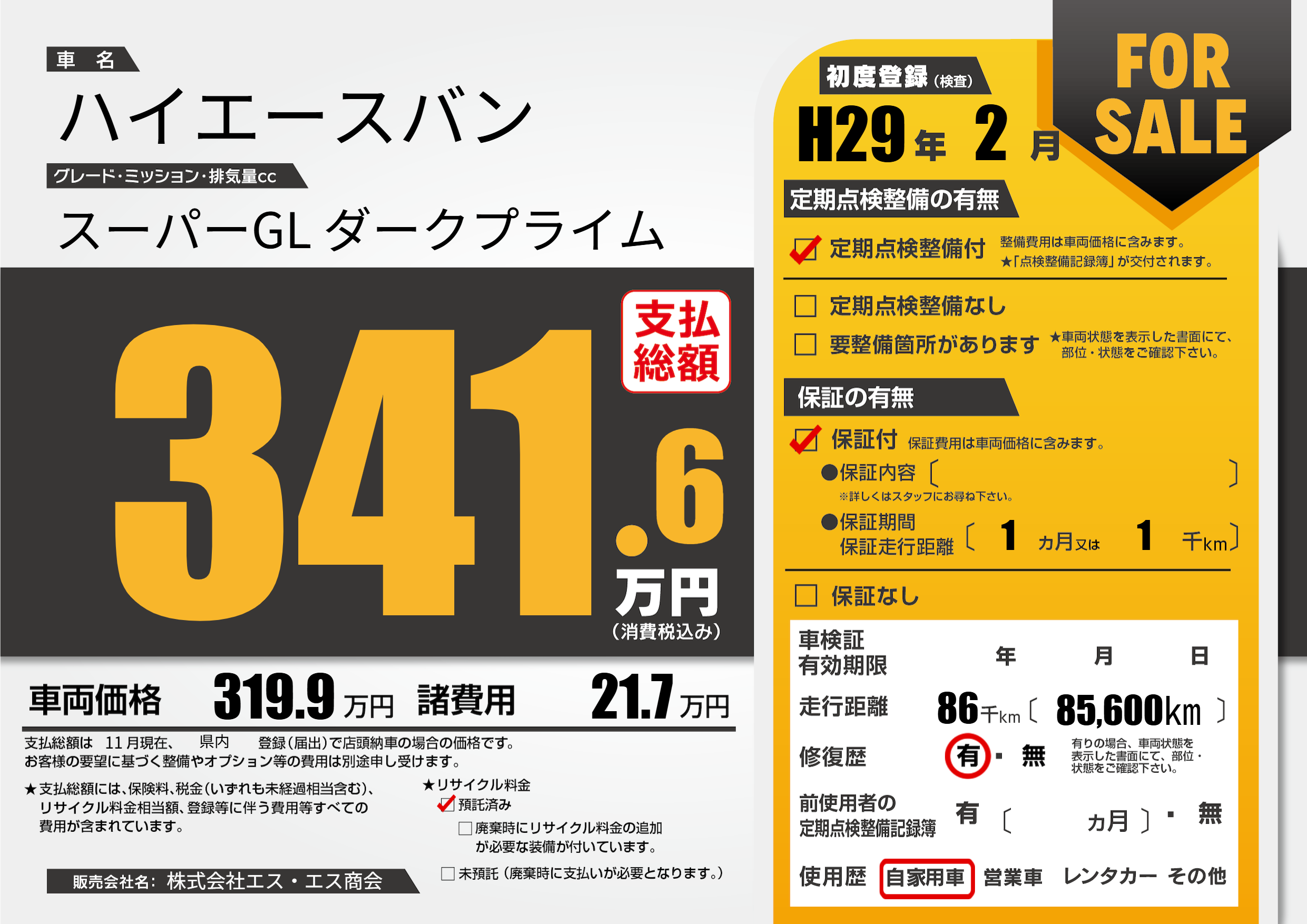 | 走行キロ | 8.6万km | ||