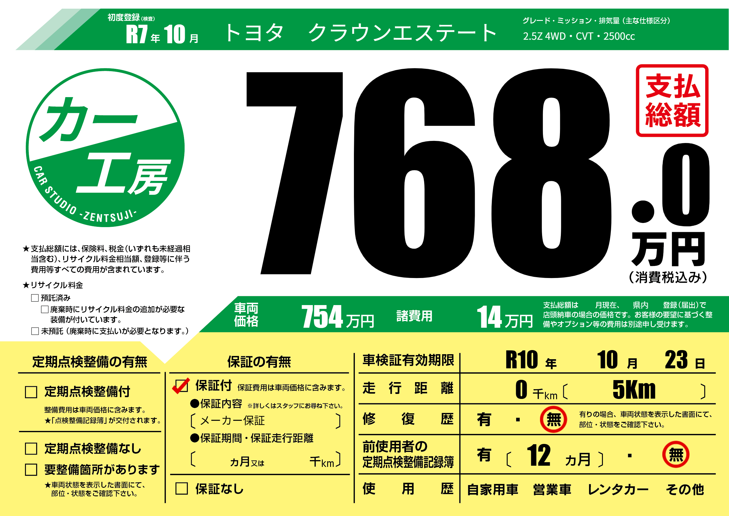なし | 車検制限 | R10年10月23月 |